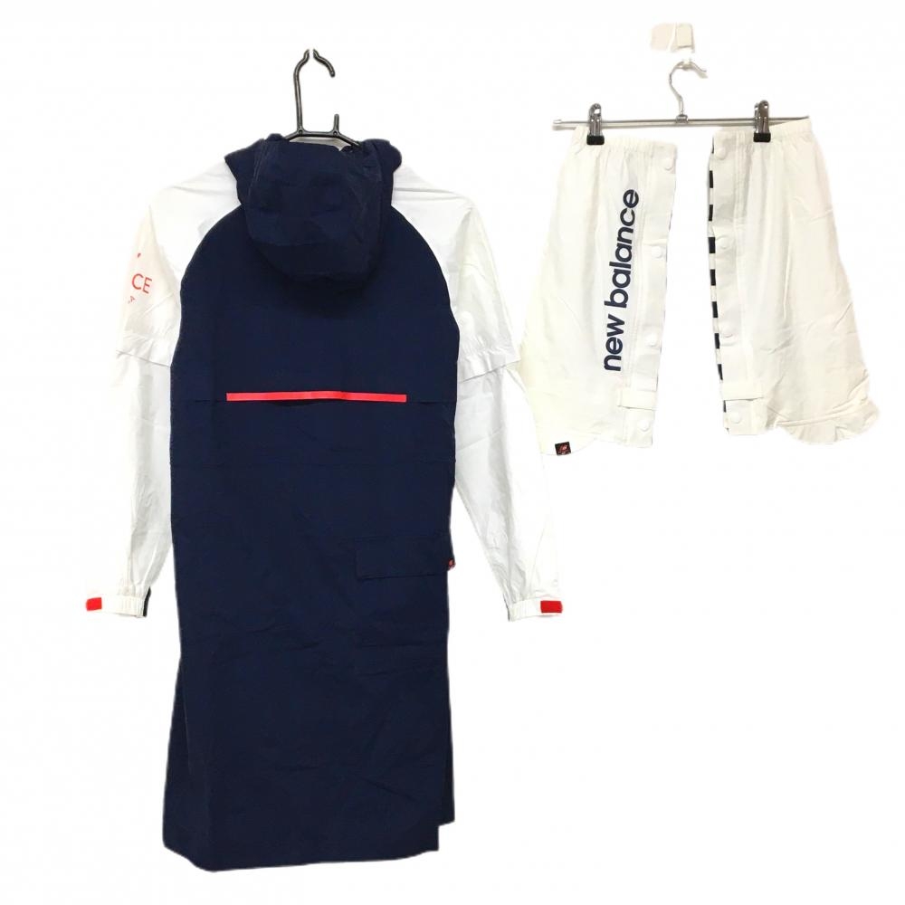 【美品】ニューバランス レインウェア(2WAYワンピース×レッグカバー) ネイビー×白 レディース 1(M) ゴルフウェア New Balance