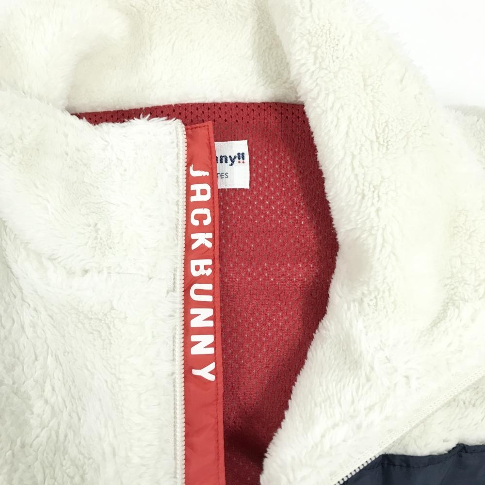 【美品】ジャックバニー ボアベスト 白×ネイビー 胸ポケット 裏地メッシュ メンズ 5(L) ゴルフウェア Jack Bunny