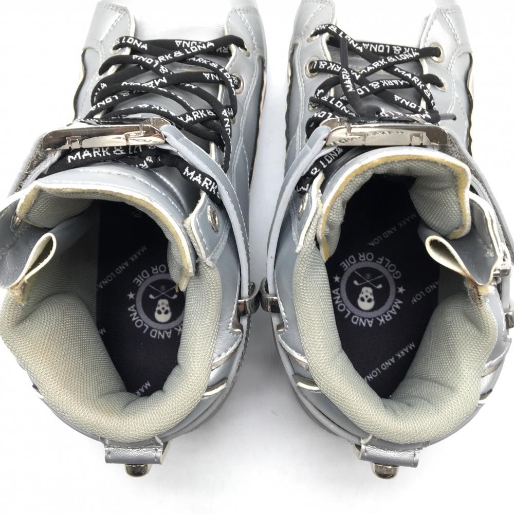 【美品】マークアンドロナ ハイカットゴルフシューズ シルバー×黒 スパイクレス メンズ 26.0 ゴルフウェア MARK&LONA