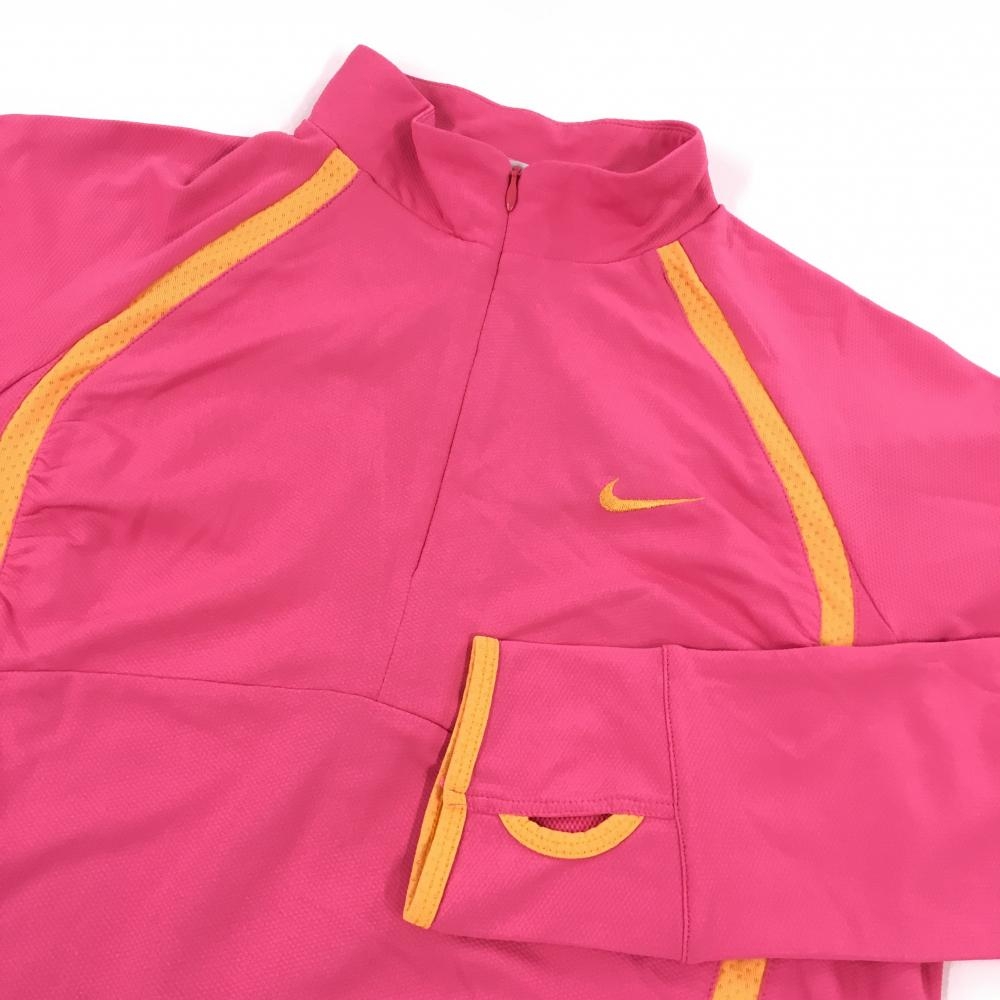 【超美品】ナイキ ブルゾン ピンク×オレンジ ハーフジップ サムホール レディース L ゴルフウェア NIKE