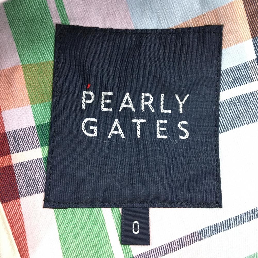 【美品】パーリーゲイツ テーラードジャケット マルチカラー チェック コットン混 レディース 0(S) ゴルフウェア PEARLY GATES