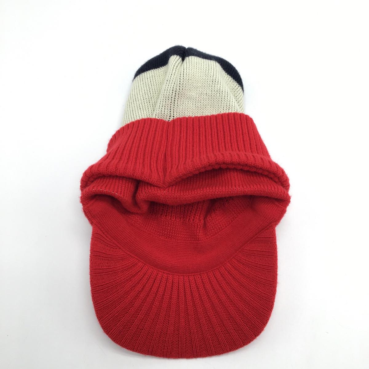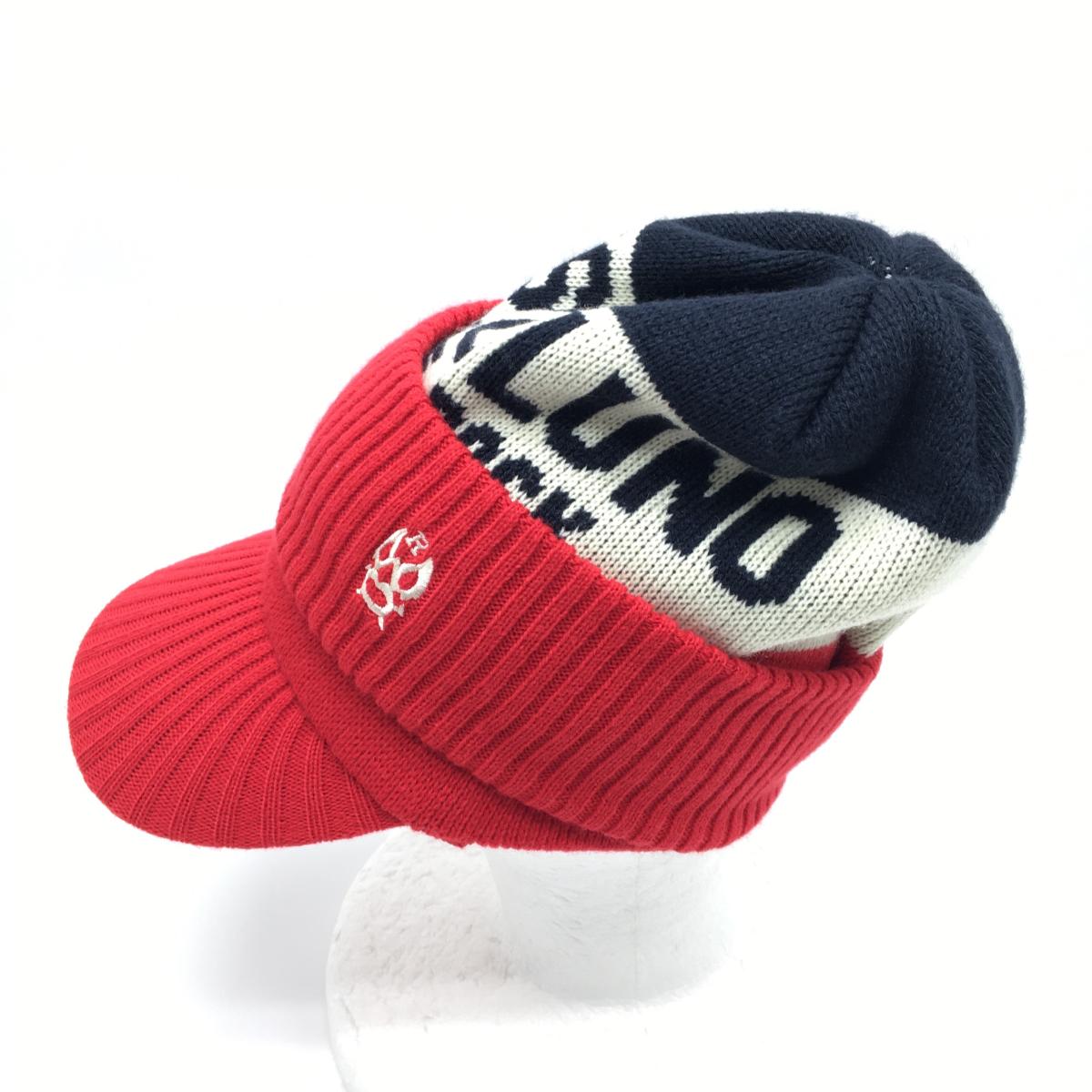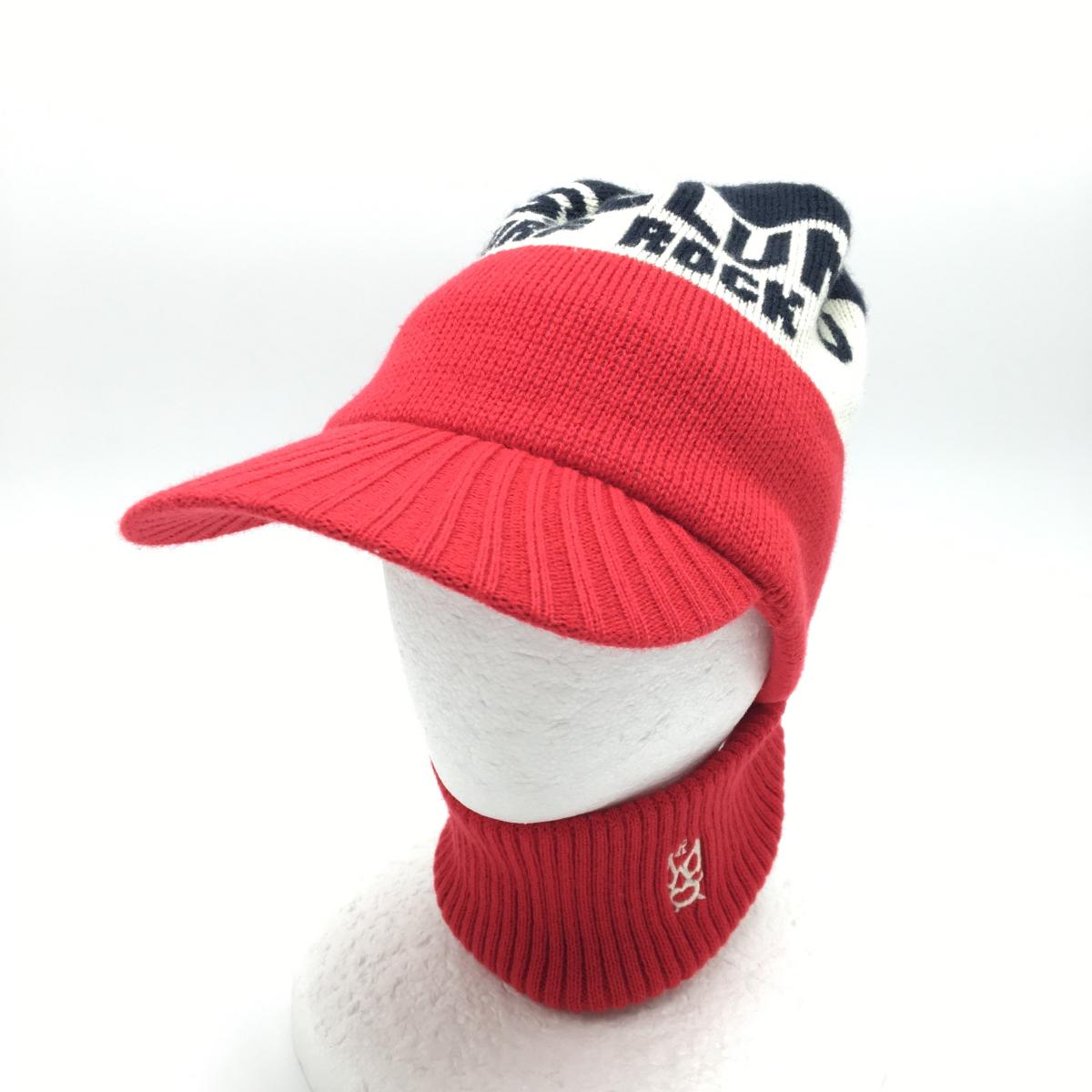【超美品】ラッセルノ 2WAYつば付ニット帽 レッド×白×ネイビー ルチャ ウール混 ネックウォーマー F ゴルフウェア RUSSELUNO