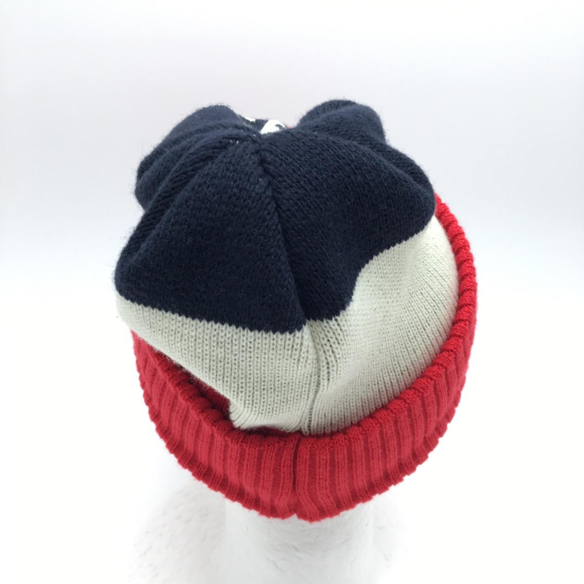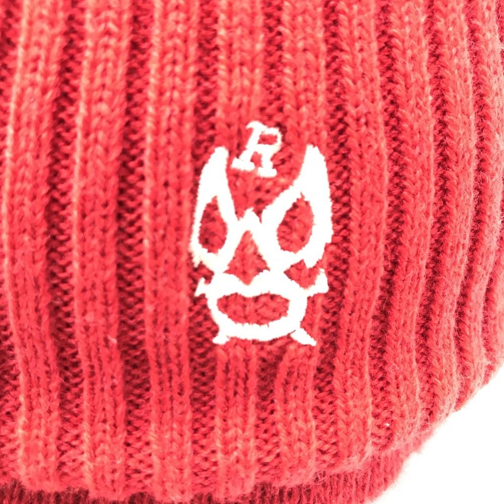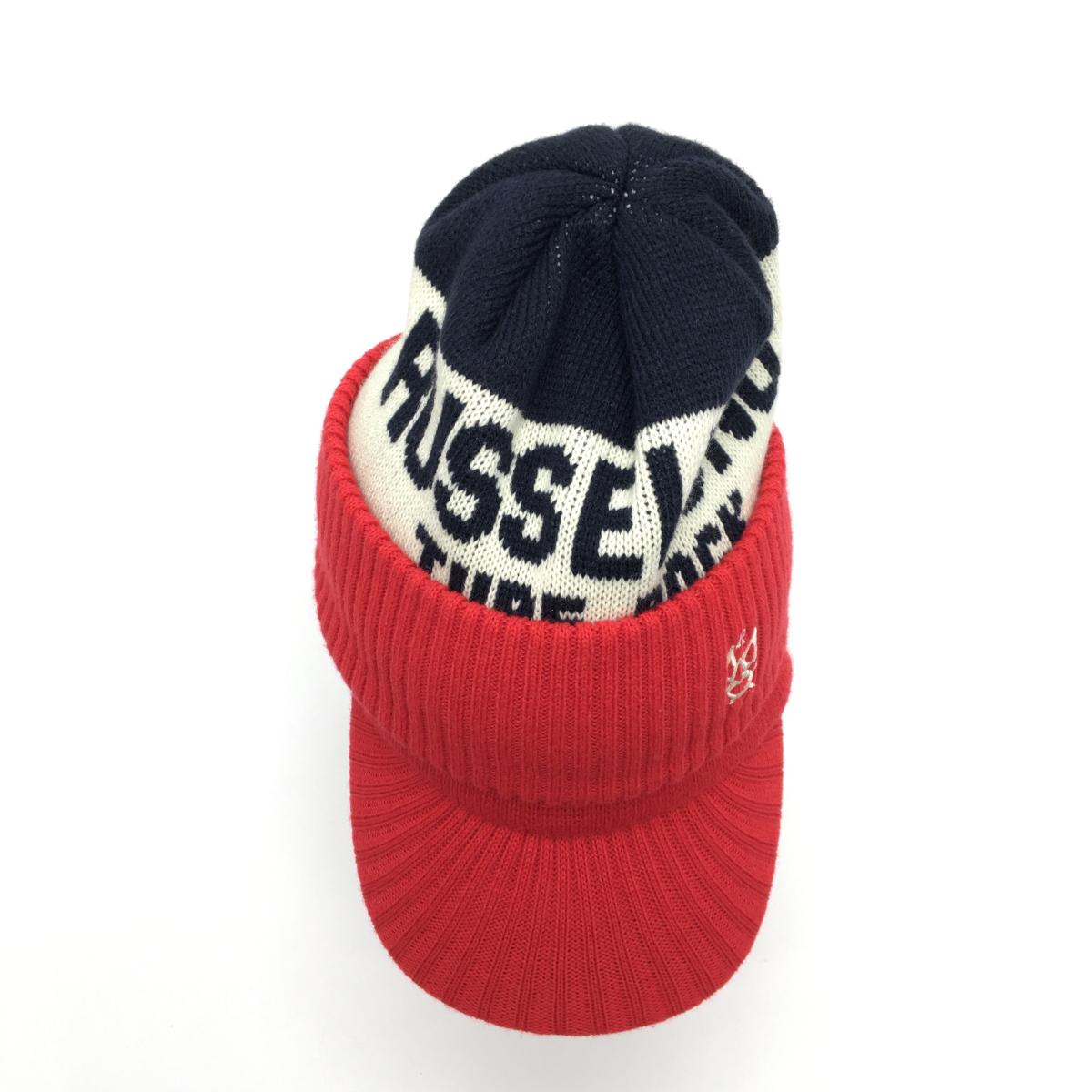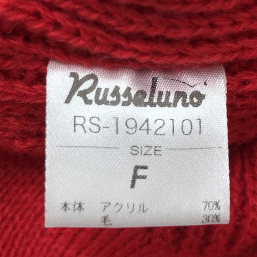【超美品】ラッセルノ 2WAYつば付ニット帽 レッド×白×ネイビー ルチャ ウール混 ネックウォーマー F ゴルフウェア RUSSELUNO