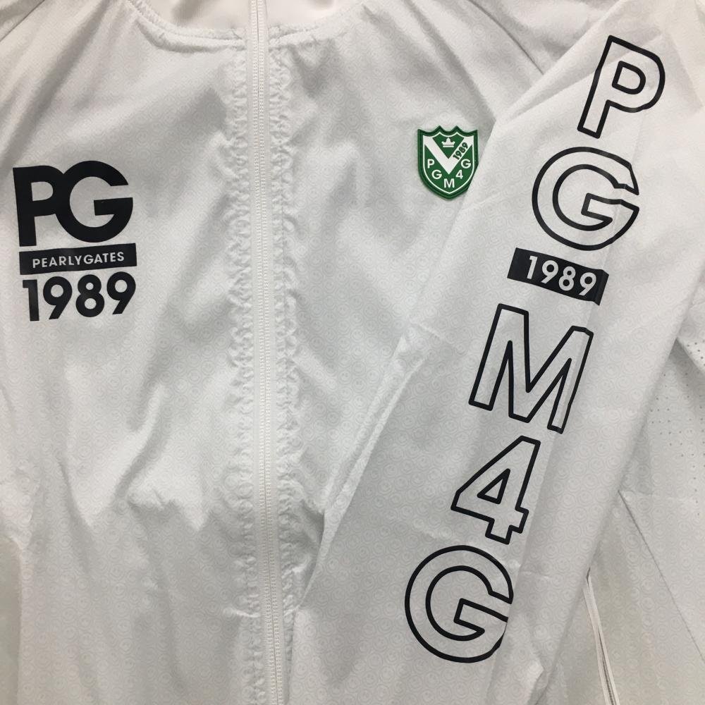 【美品】パーリーゲイツ ジャケット 白×ライトグレー ニコちゃん総柄 一部パンチング レディース 1(M) ゴルフウェア PEARLY GATES