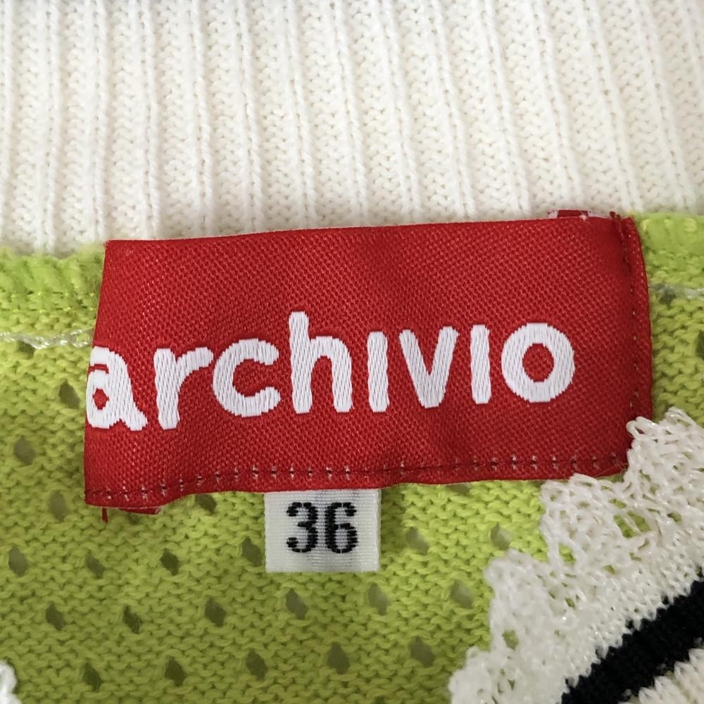 【超美品】アルチビオ ニットベスト ライトグリーン×白 背面メッシュ レディース 36(S) ゴルフウェア archivio