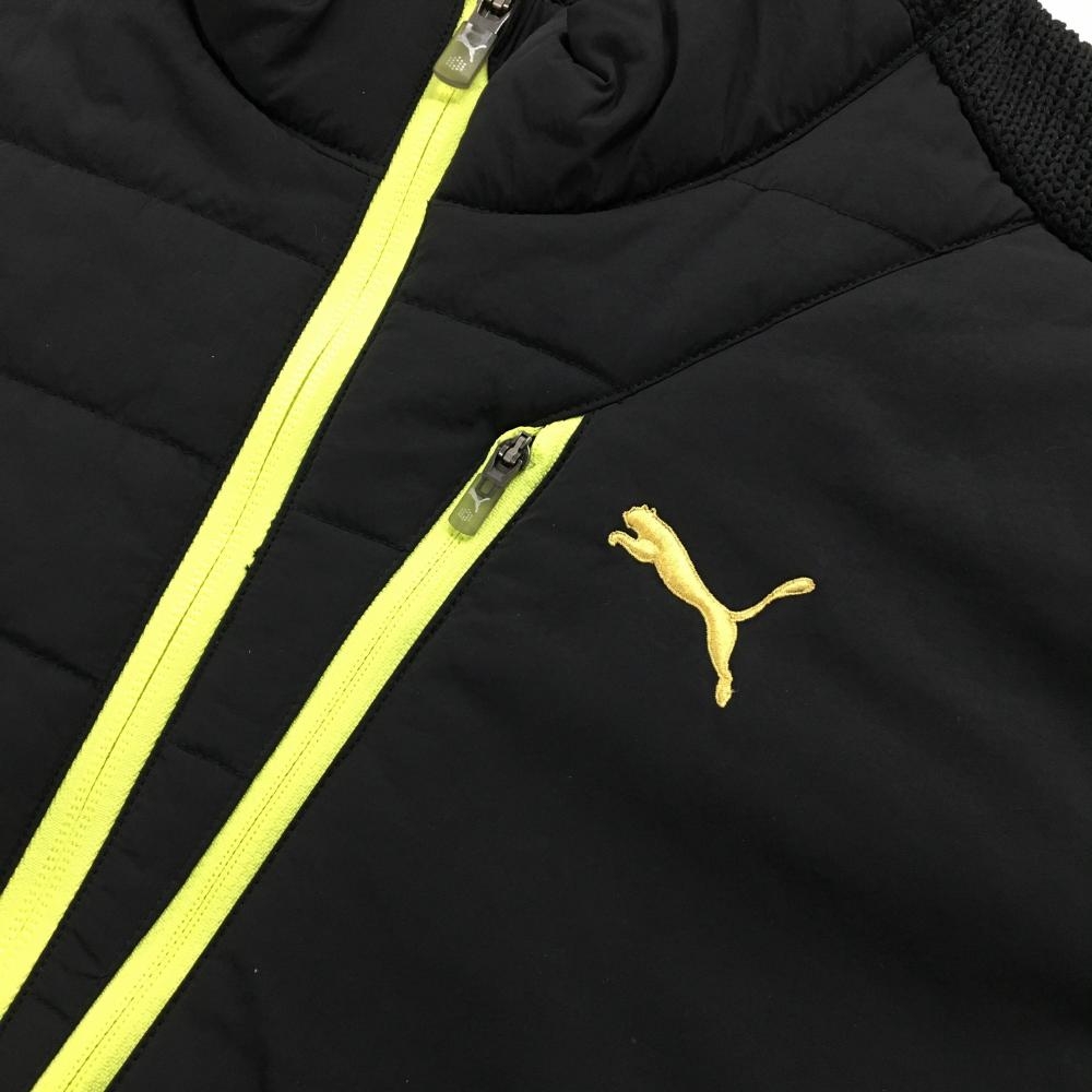 【美品】プーマ 中綿ニットジャケット 黒×イエロー 身頃中綿 3ポケット メンズ XXL ゴルフウェア PUMA