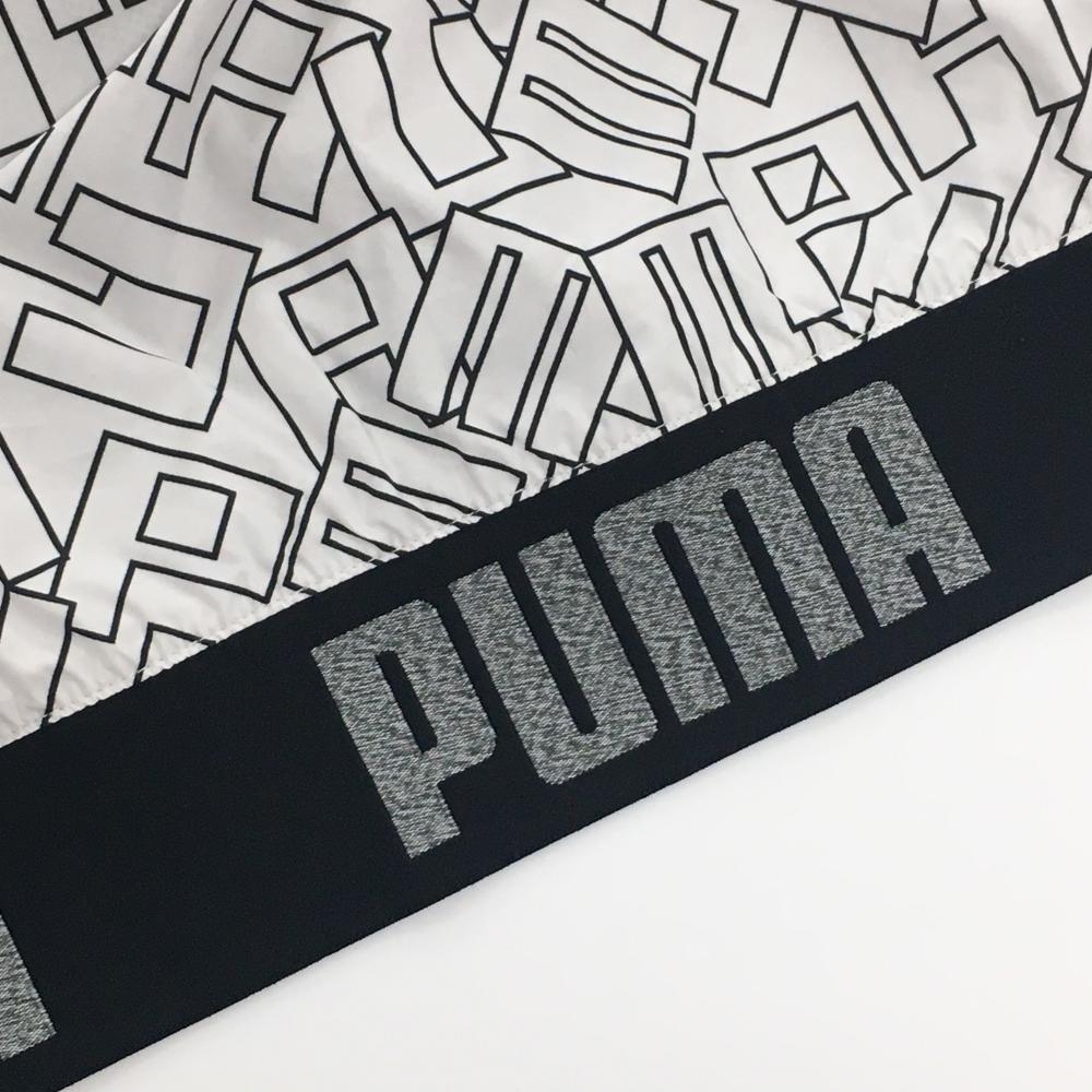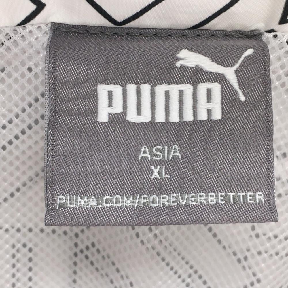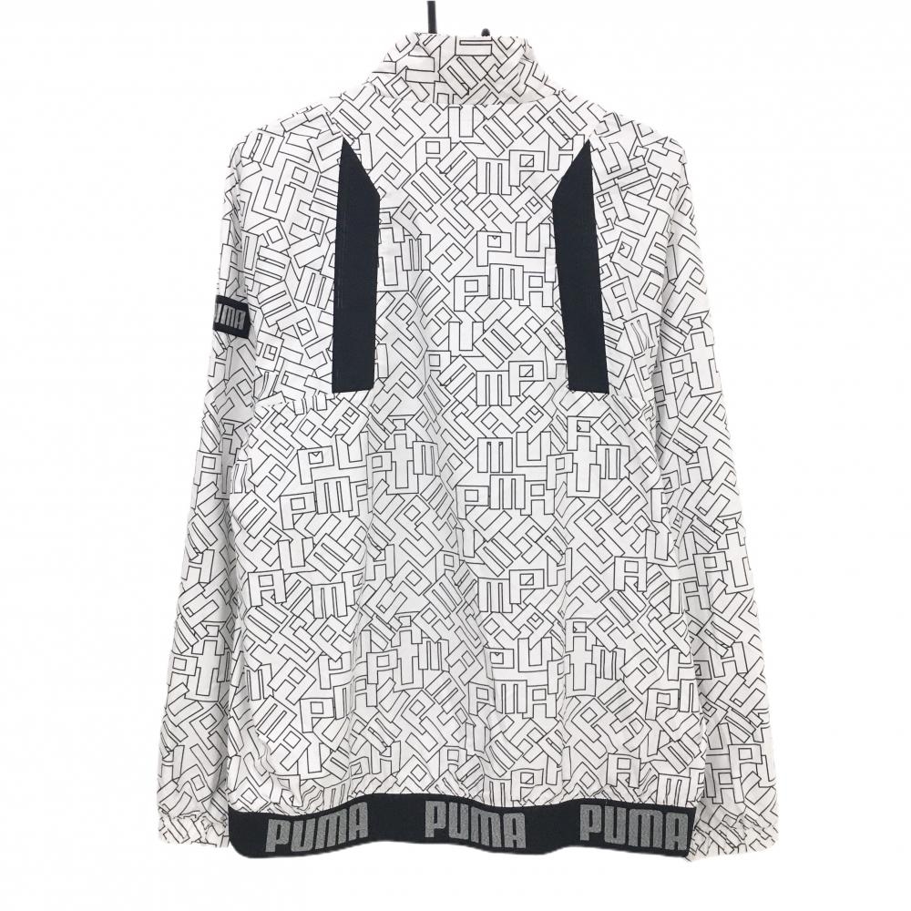 【超美品】プーマ ジャケット 白×黒 英字総柄 裏地メッシュ 薄手 背面一部リブ メンズ XL ゴルフウェア PUMA