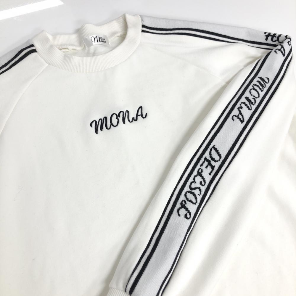 【超美品】モナデルソル トレーナー 白×黒 スウェット 袖ロゴ Mona レディース L ゴルフウェア DELSOL