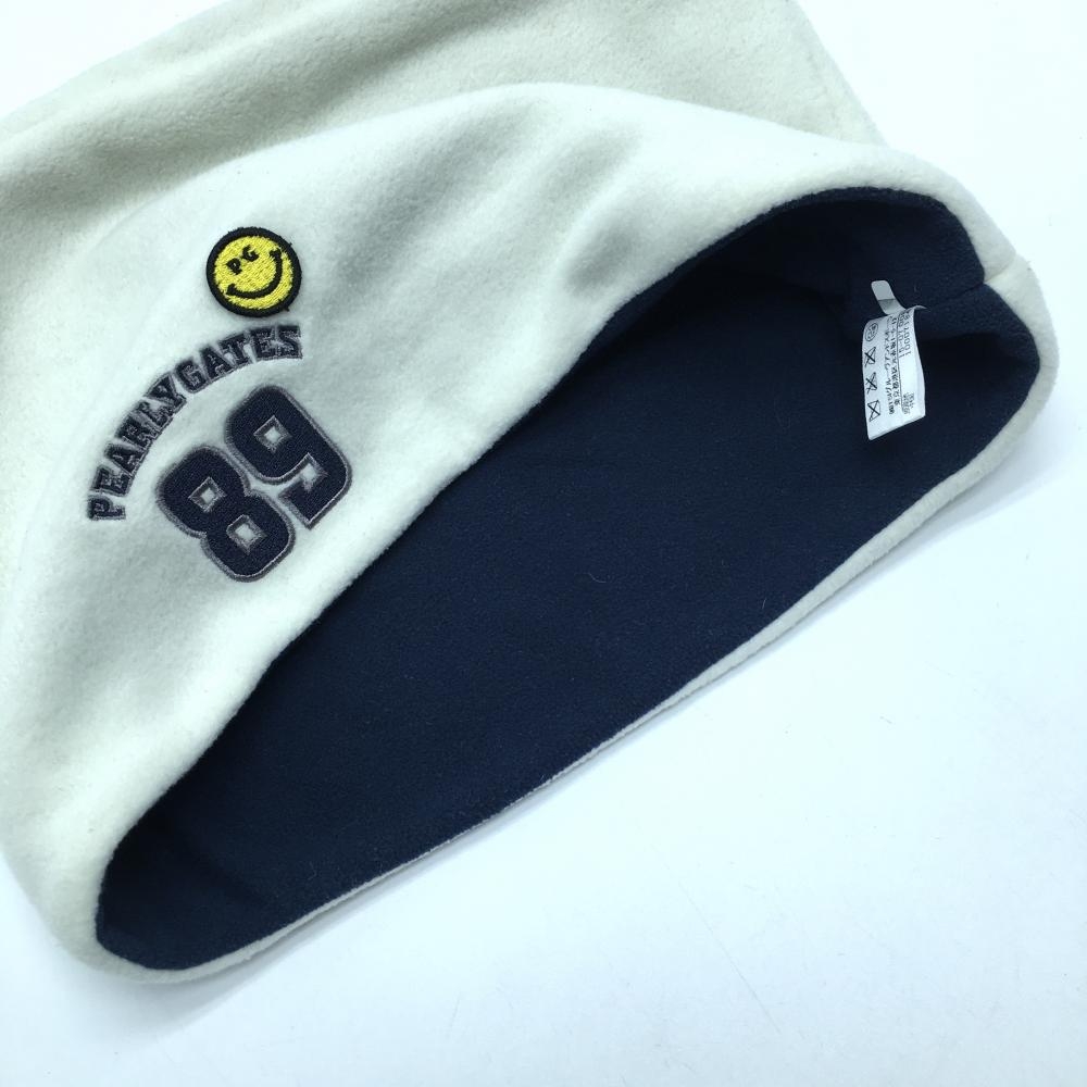 【美品】パーリーゲイツ ネックウォーマー 白×ネイビー フリース ドローコード ニコちゃん スマイル FR ゴルフウェア PEARLY GATES