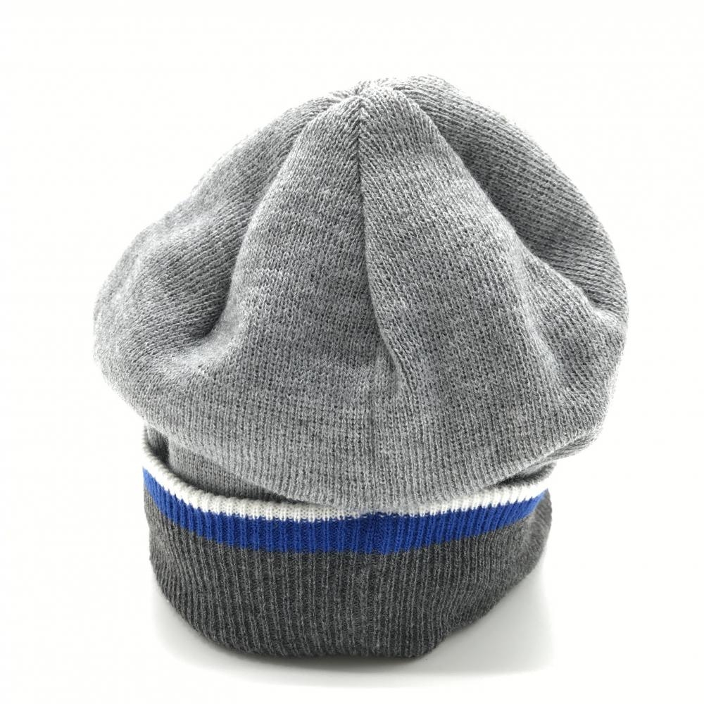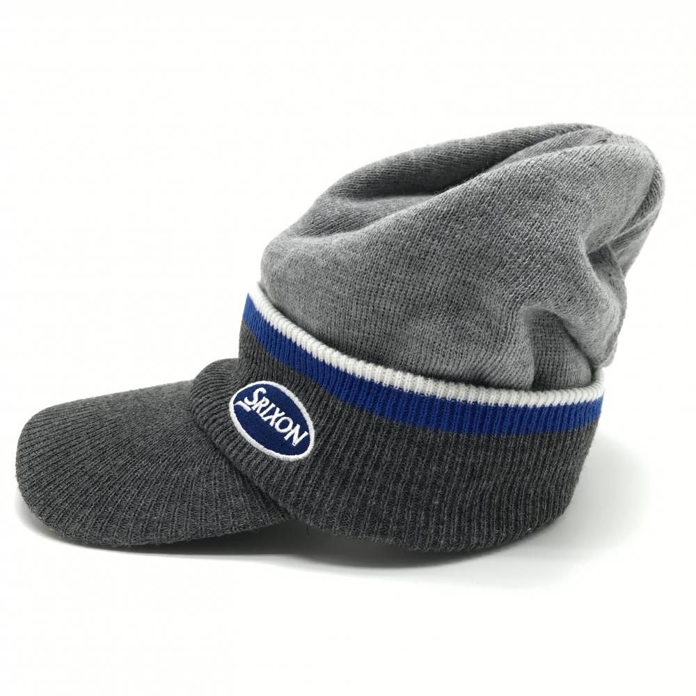 【超美品】スリクソン つば付きニット帽 杢グレー×杢ダークグレー×ブルー フロントロゴ刺しゅう フリーサイズ ゴルフウェア SRIXON