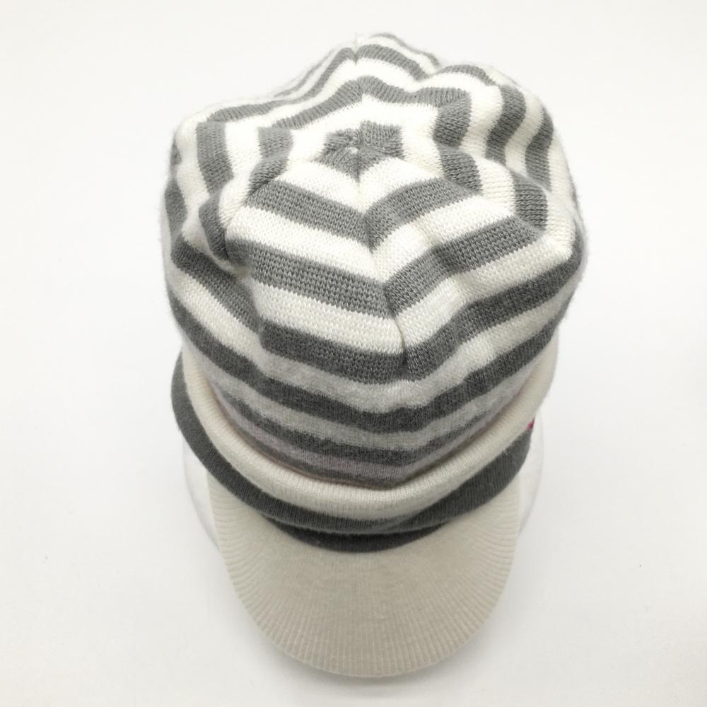 【美品】ビバハート 3WAYつば付きニット帽 白×グレー ボーダー ネックウォーマー 40 ゴルフウェア VIVA HEART