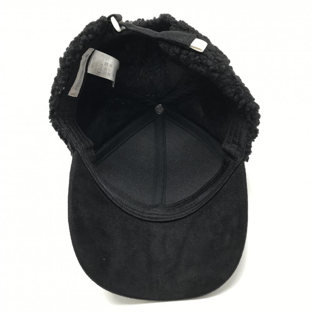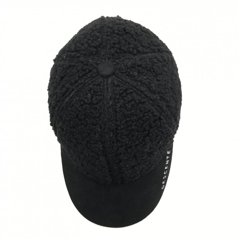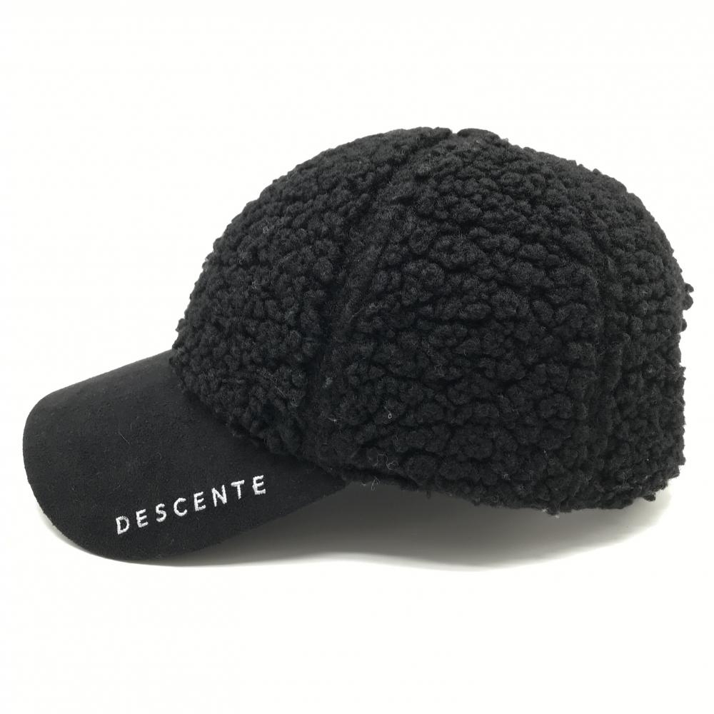 【超美品】デサントゴルフ ボアキャップ 黒 つばロゴ刺しゅう白 中田英寿 F(55-57cm) ゴルフウェア DESCENTE