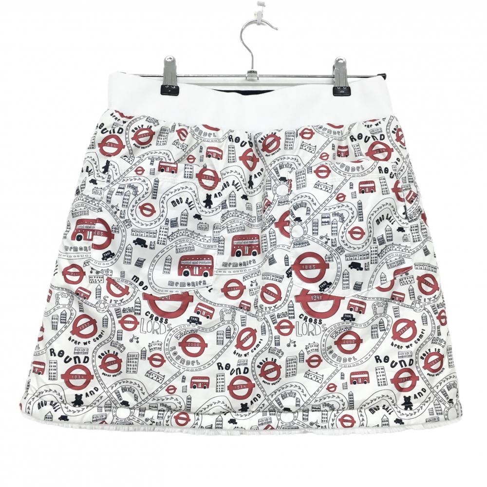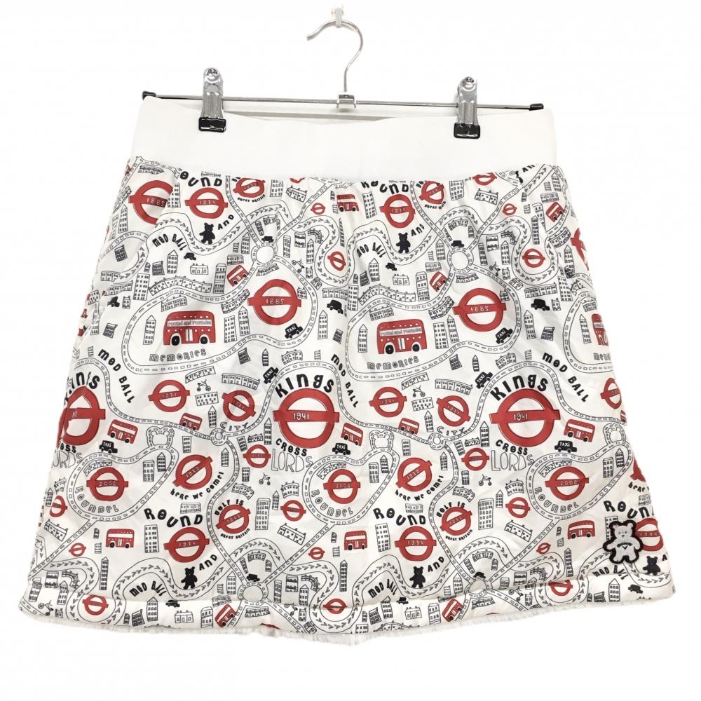 【超美品】キャロウェイ 中綿リバーシブルスカート 白 ファー 裏総柄 ウエストゴム ベアワッペン レディース L ゴルフウェア Callaway