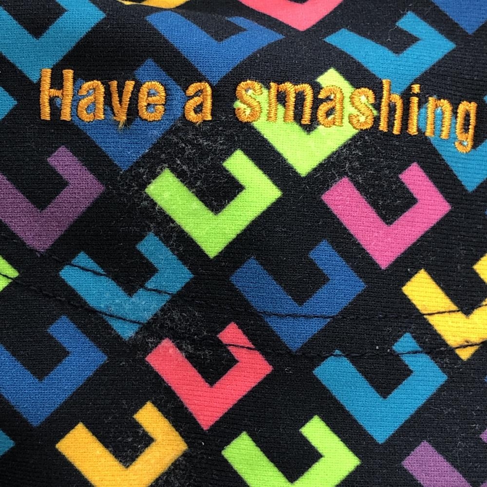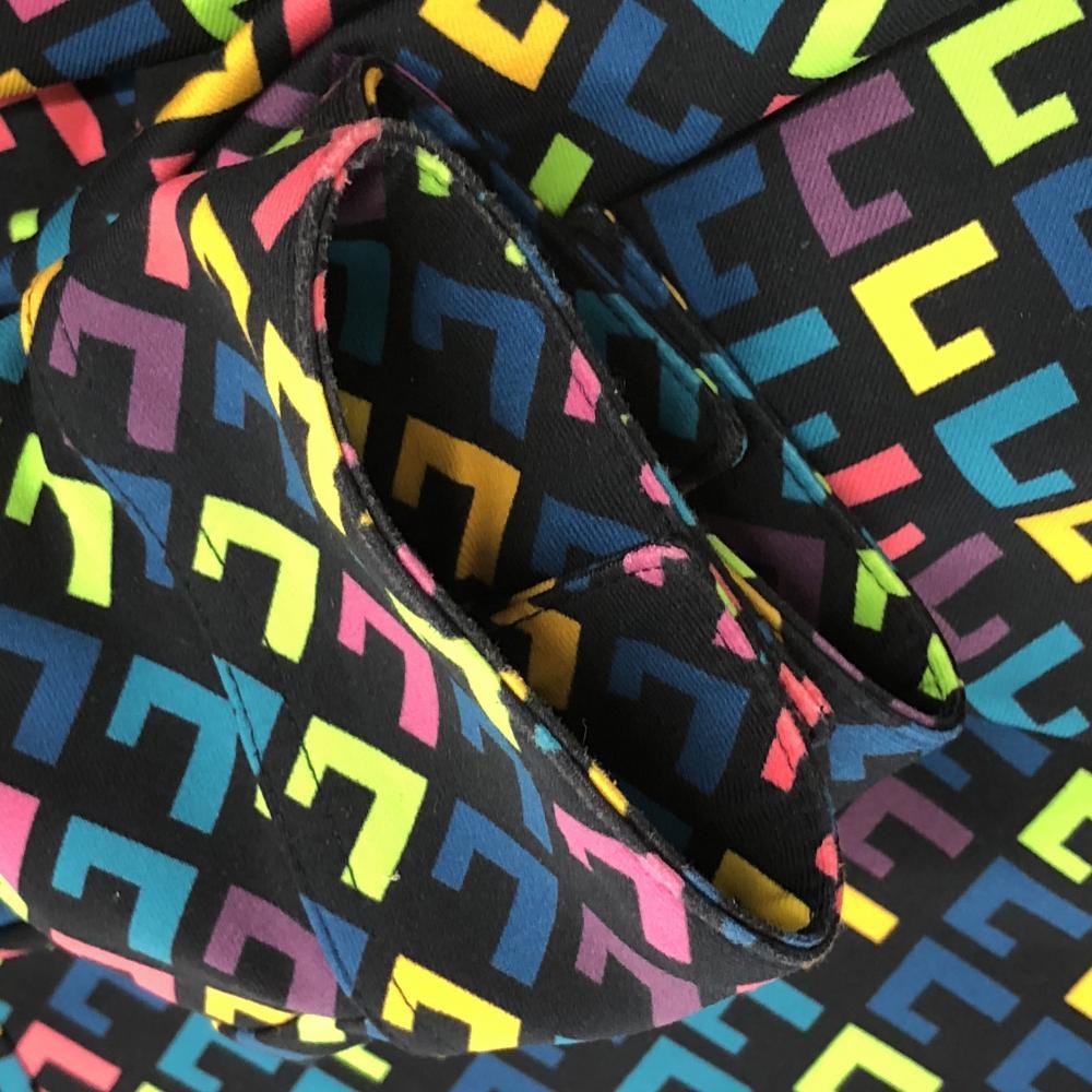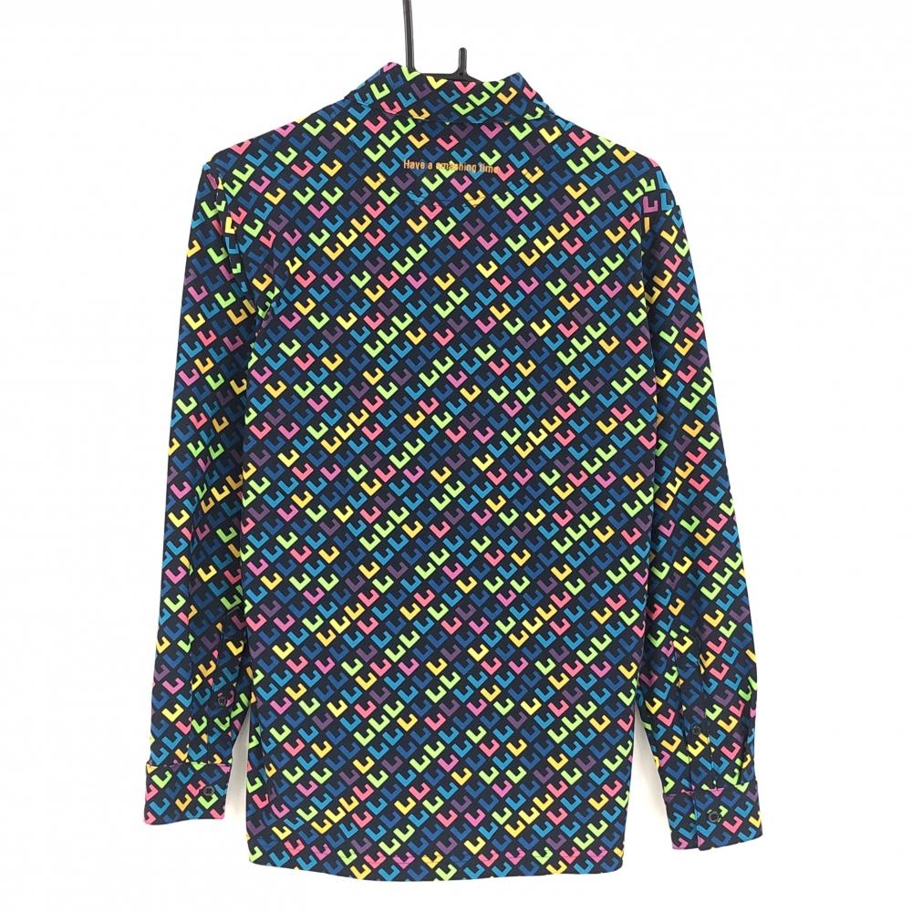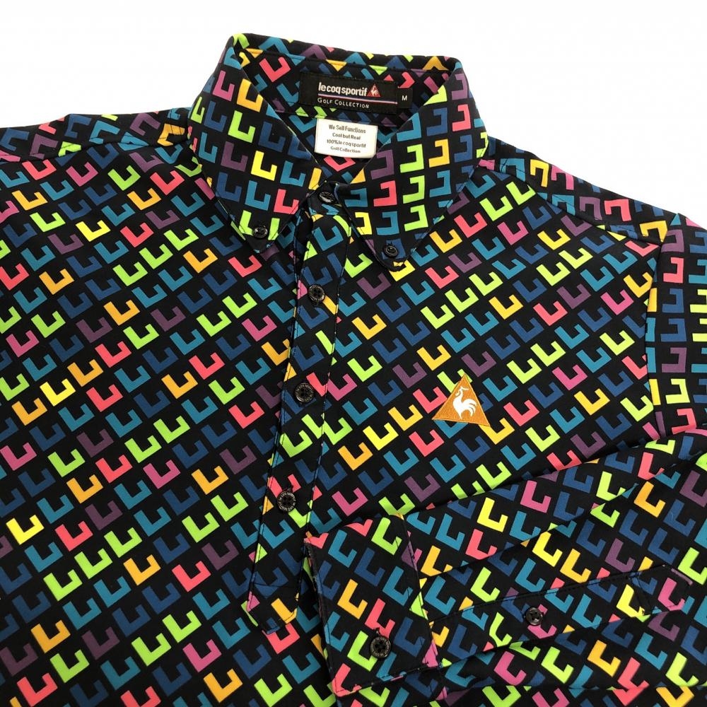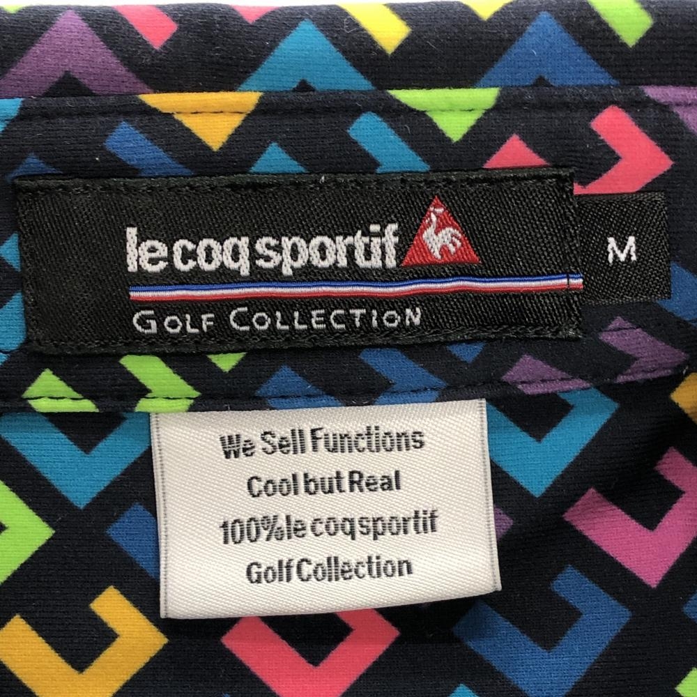 【美品】ルコックゴルフ 長袖ポロシャツ ネイビー×マルチカラー 総柄 ボタンダウン メンズ M ゴルフウェア le coq sportif