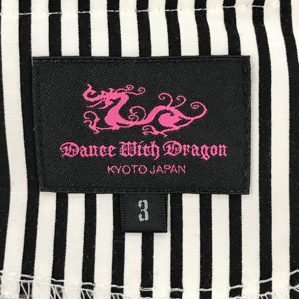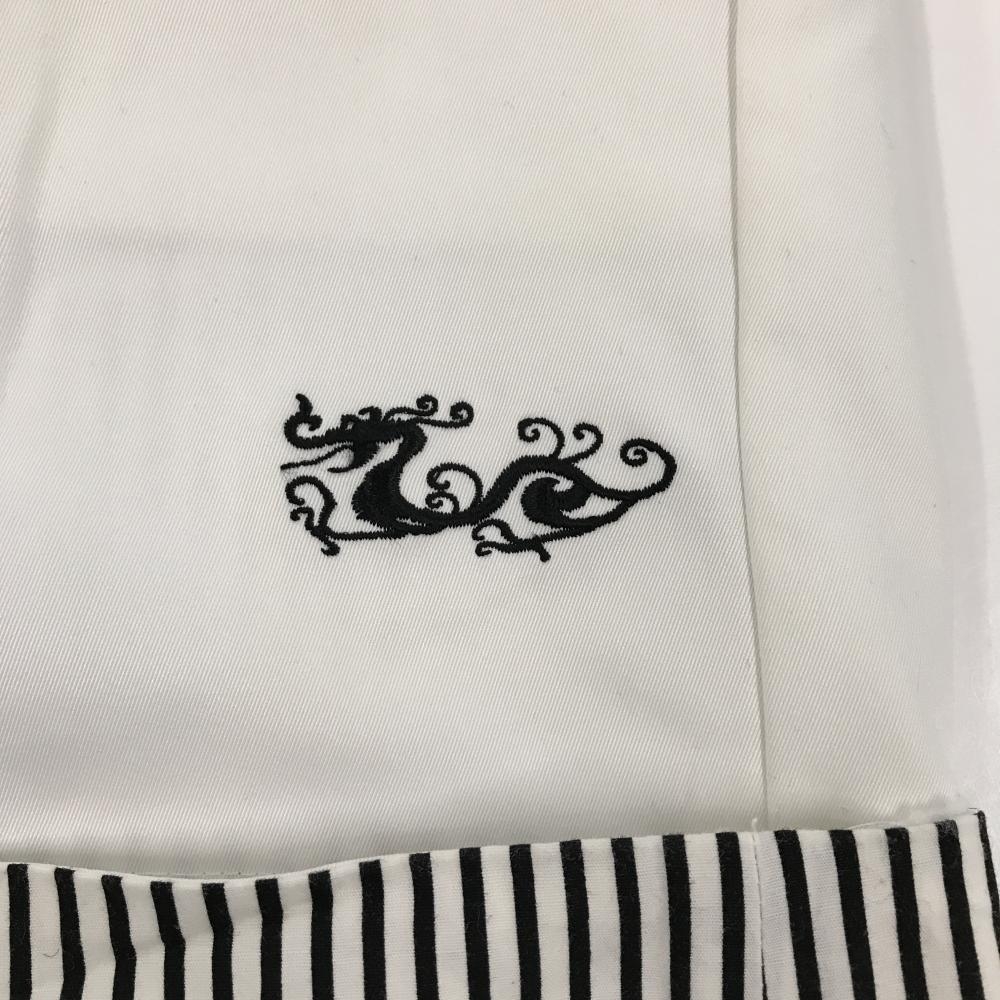 ダンスウィズドラゴン ショートパンツ 白×黒 裾ストライプ ロゴ刺しゅう レディース 3(L) ゴルフウェア Dance With Dragon