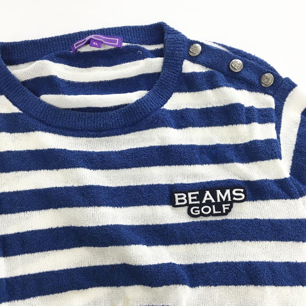 ビームスゴルフ セーター ブルー×白 ボーダー ワッペン メンズ XL ゴルフウェア BEAMS GOLF