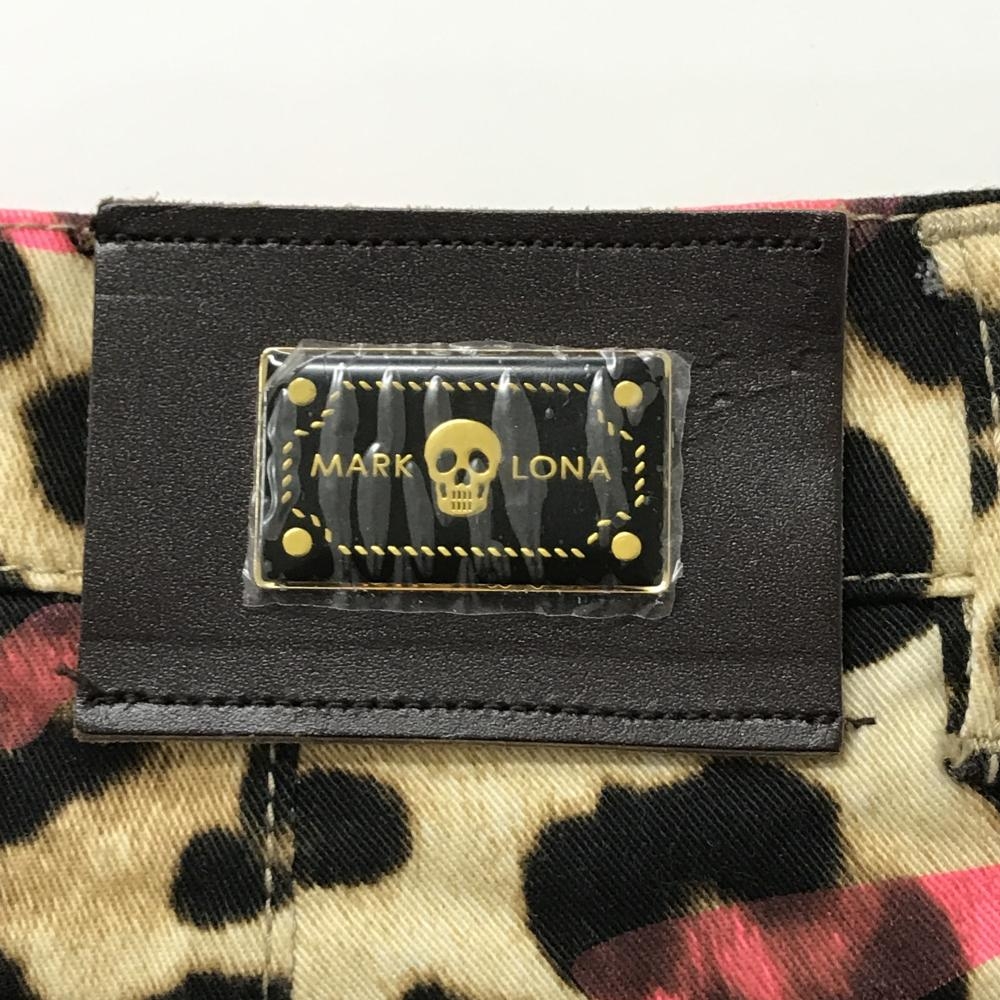 【美品】マークアンドロナ カーゴショートパンツ ベージュ×黒×蛍光ピンク レオパード ヒョウ柄 レディース S ゴルフウェア MARK&LONA