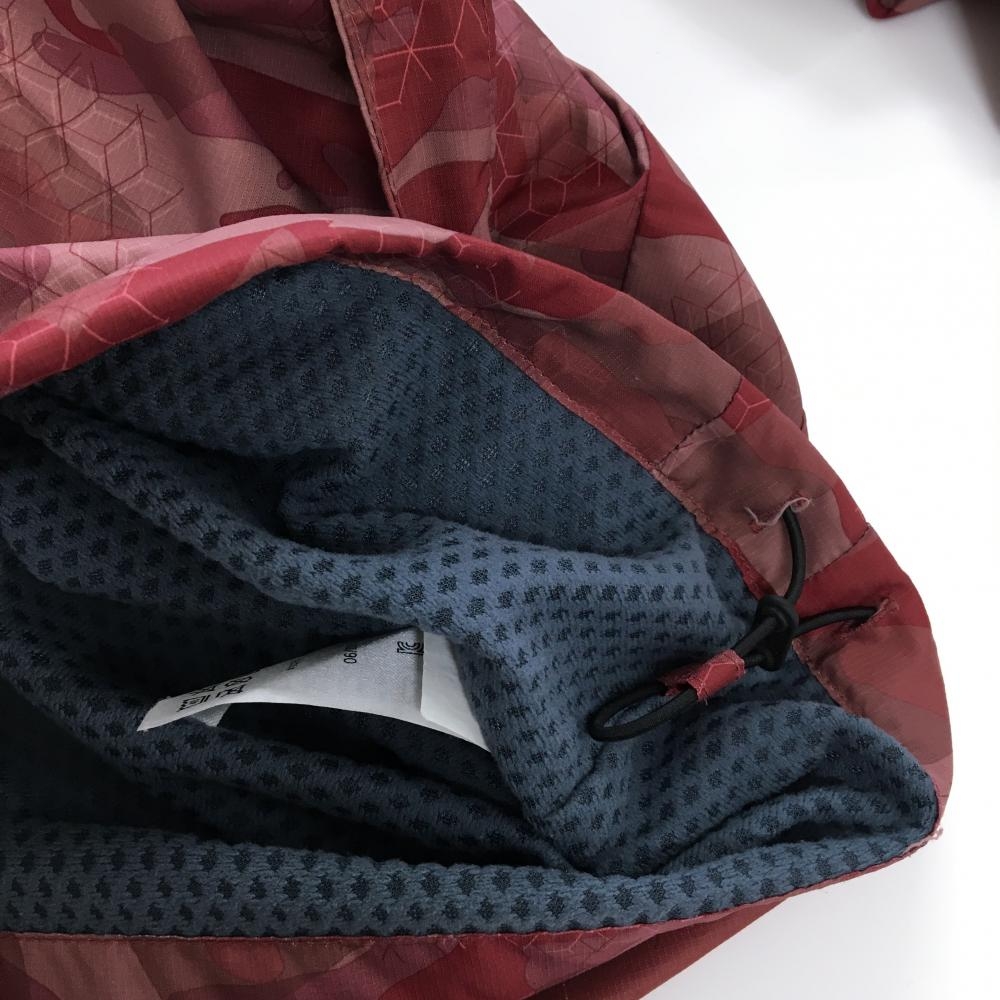 【美品】オークリー ジャケット レッド×ブラウン カモフラ風 裏地メッシュ微起毛 フード収納 メンズ L ゴルフウェア Oakley