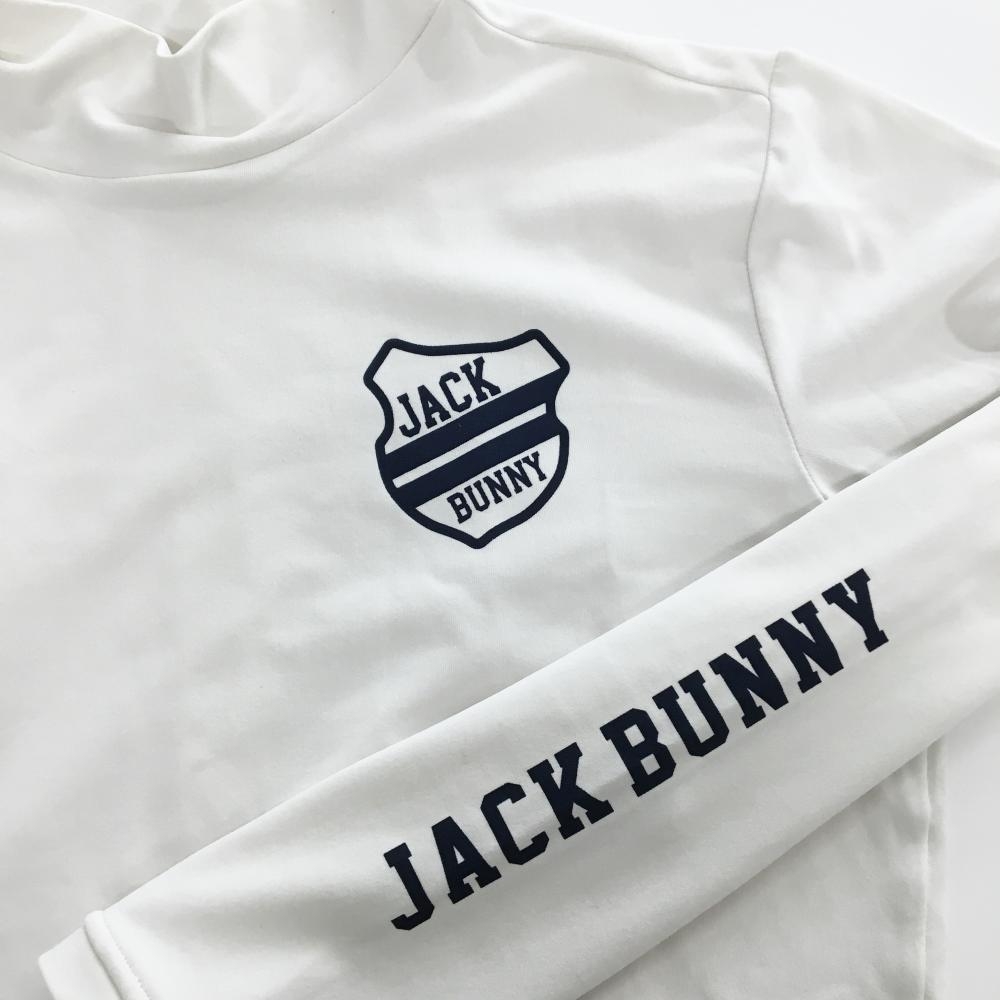 ジャックバニー 長袖ハイネックシャツ 白×ネイビー ロゴプリント レディース 0(S) ゴルフウェア Jack Bunny