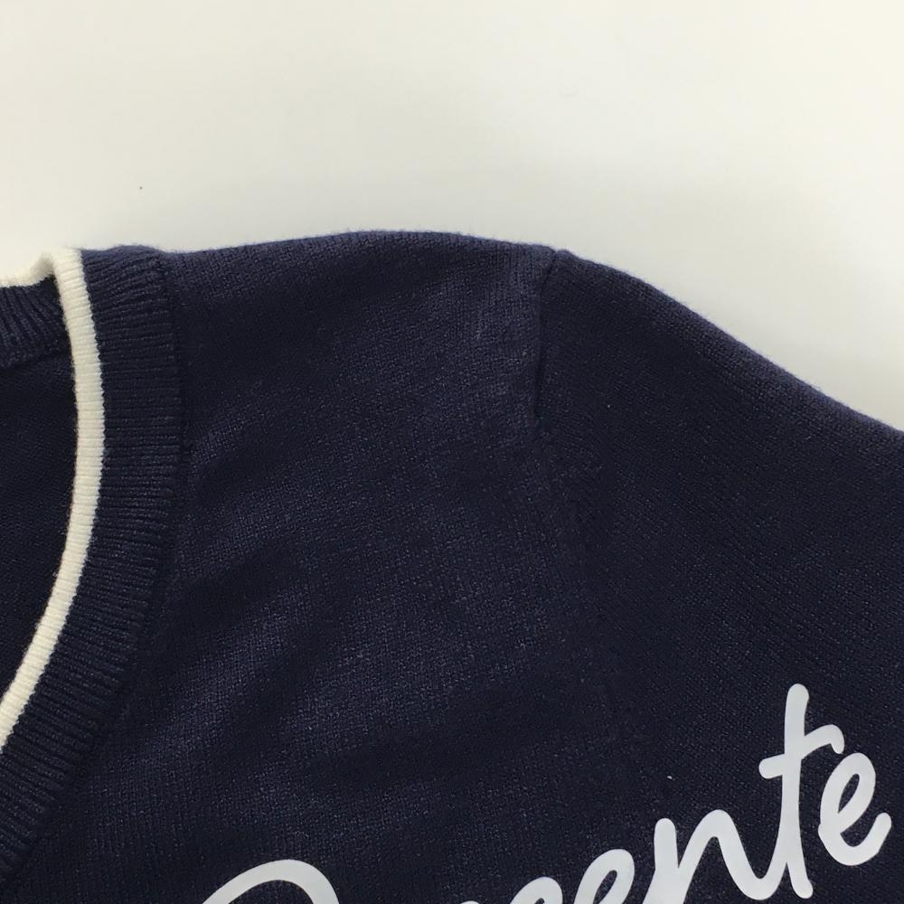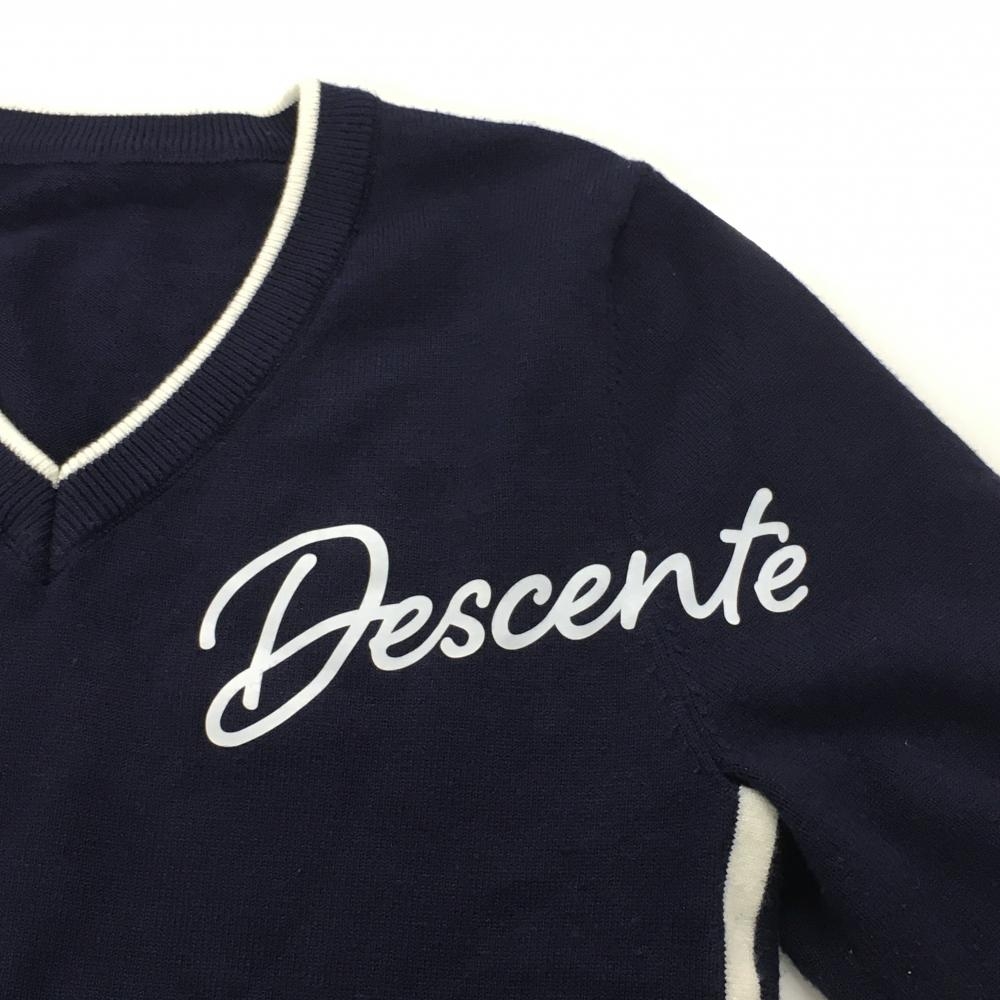 デサント セーター ネイビー×白 Vネック 肩ロゴ ニット レディース S ゴルフウェア DESCENTE