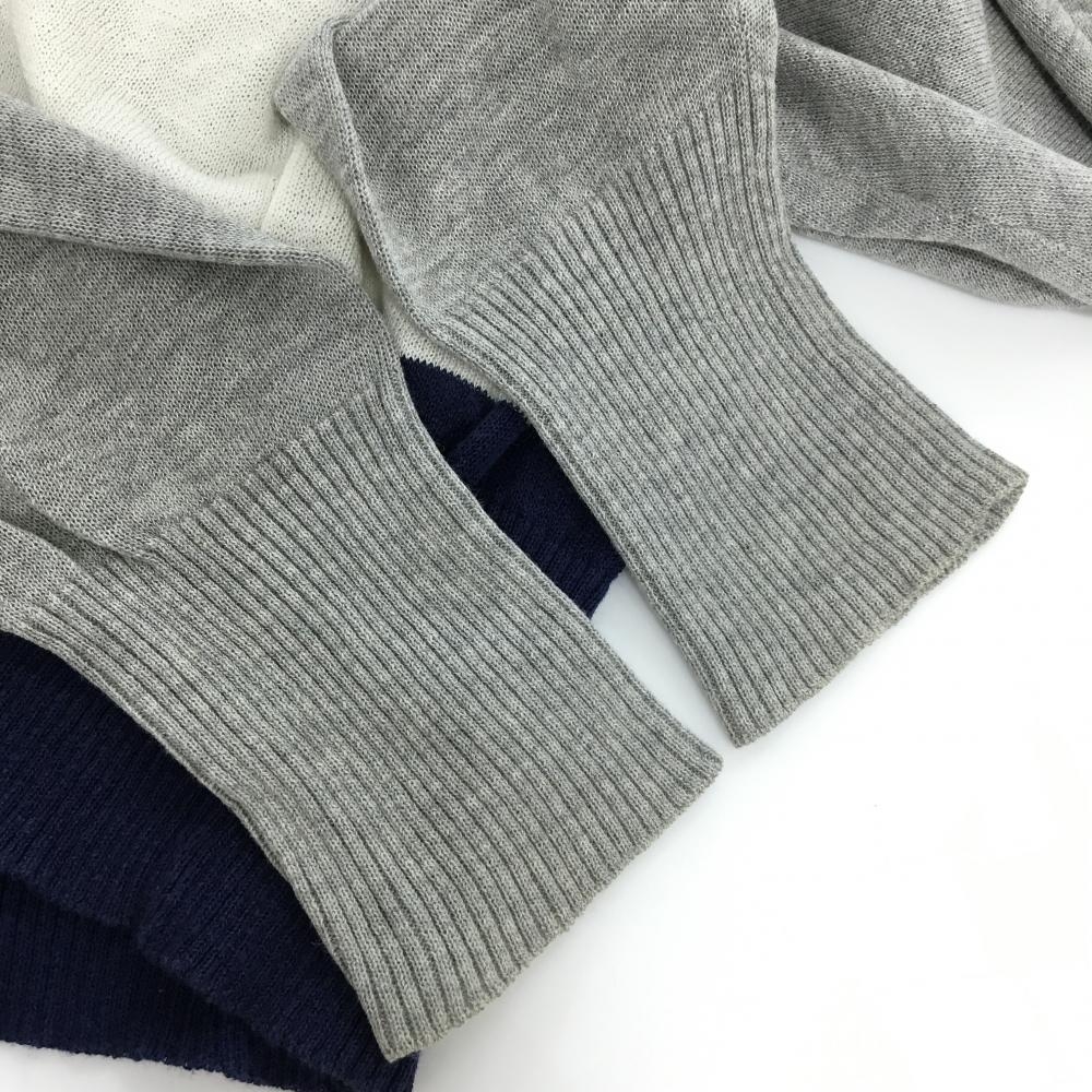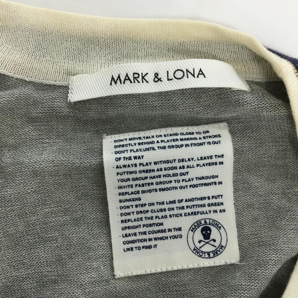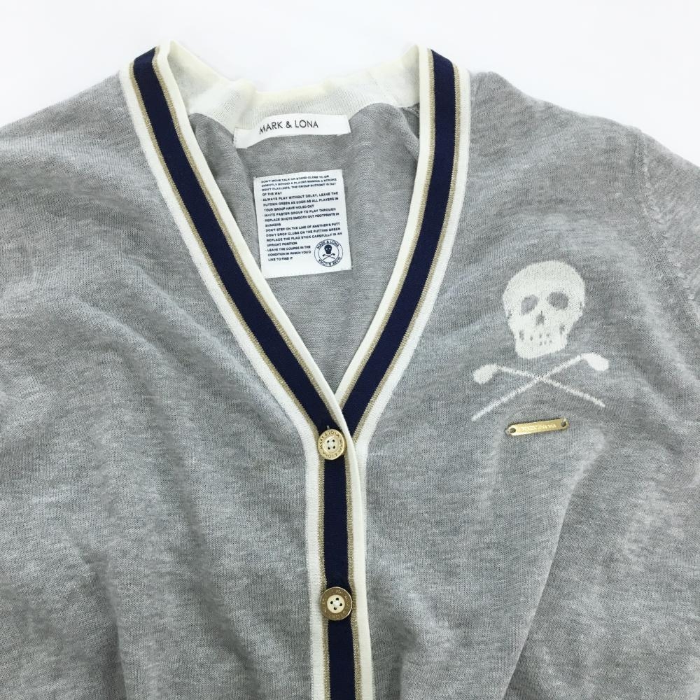 マークアンドロナ ニットカーディガン グレー×ネイビー スカル コットン混 Vネック レディース WM ゴルフウェア MARK&LONA