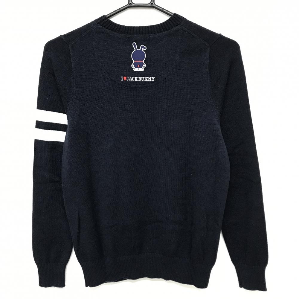 ジャックバニー×ドラえもん セーター ネイビー×白 ワッペン 袖ライン ニット ウール混 レディース 0(S) ゴルフウェア Jack Bunny
