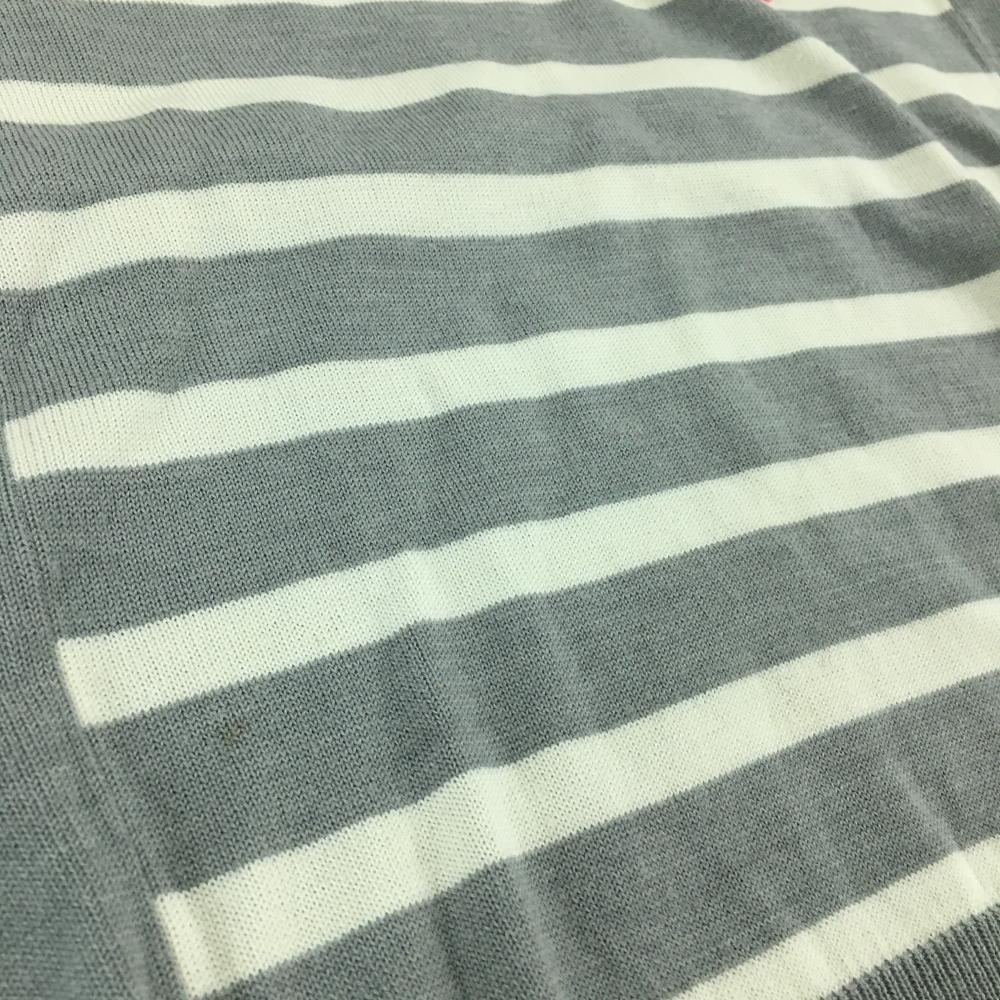 マークアンドロナ セーター グレー×白 ボーダー Vネック ウール混 ニット レディース S ゴルフウェア MARK&LONA