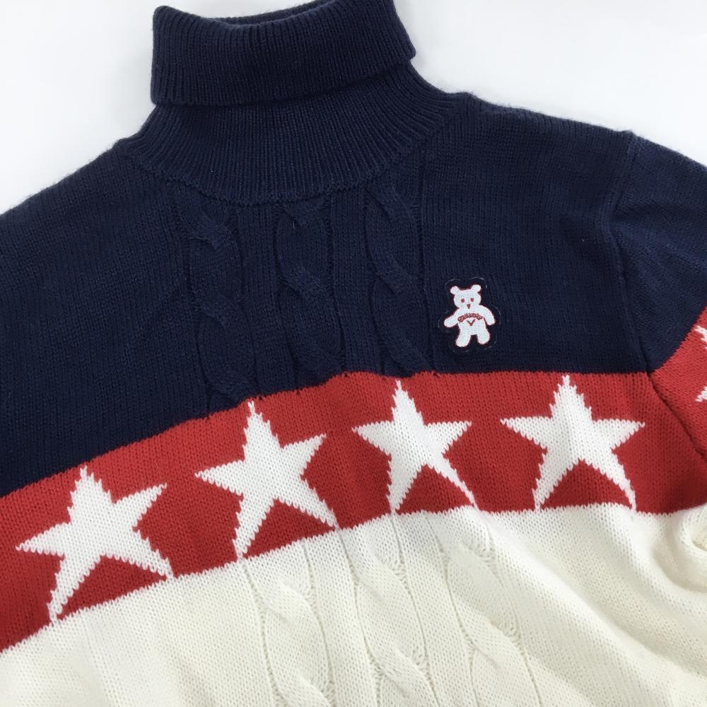 【美品】キャロウェイ タートルネックセーター ネイビー×レッド×白 クマ 星 ニット レディース M ゴルフウェア Callaway