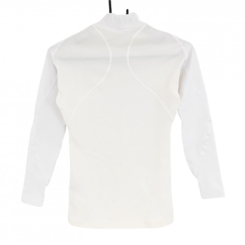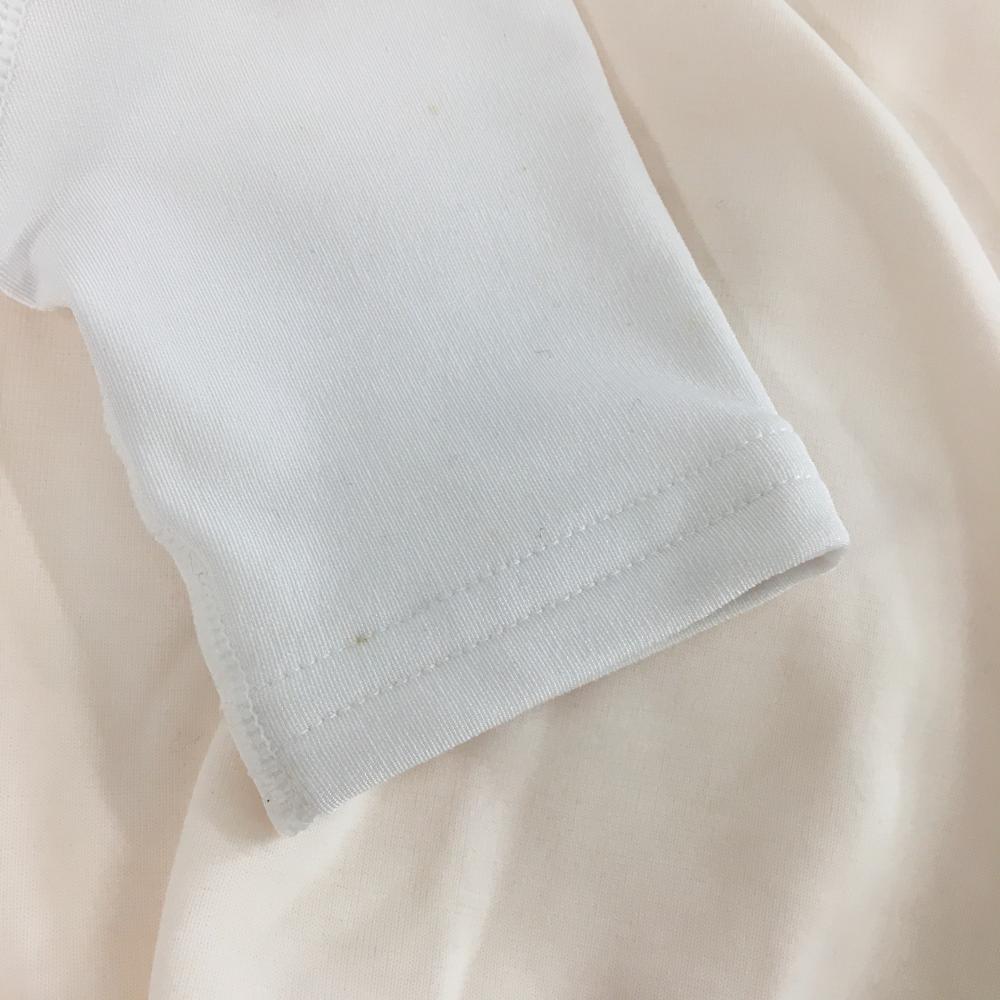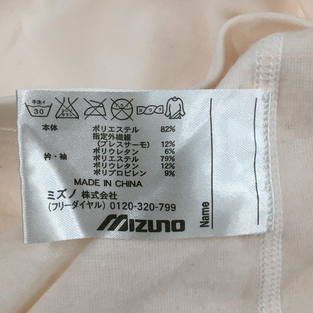 【美品】ミズノ ハイネックインナーシャツ 白×ライトピンク ロゴプリント 袖口汚れ小 レディース M ゴルフウェア MIZUNO