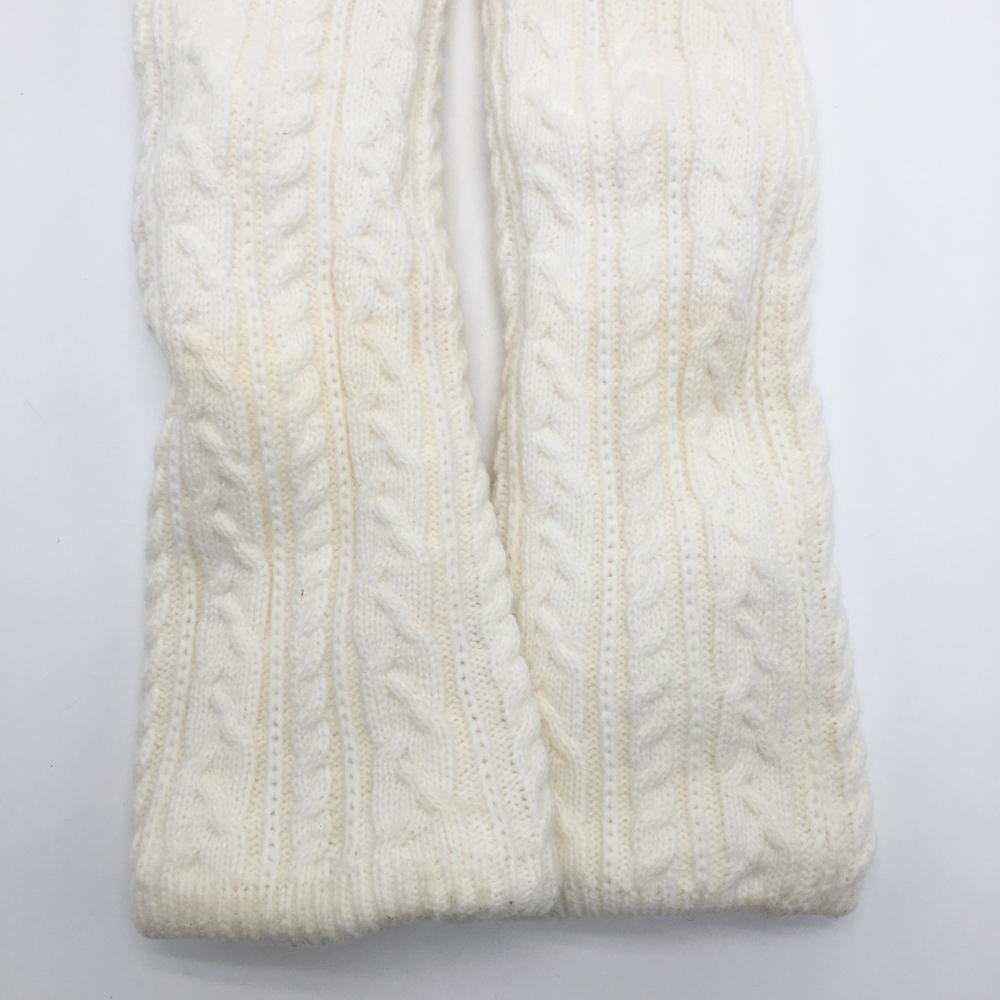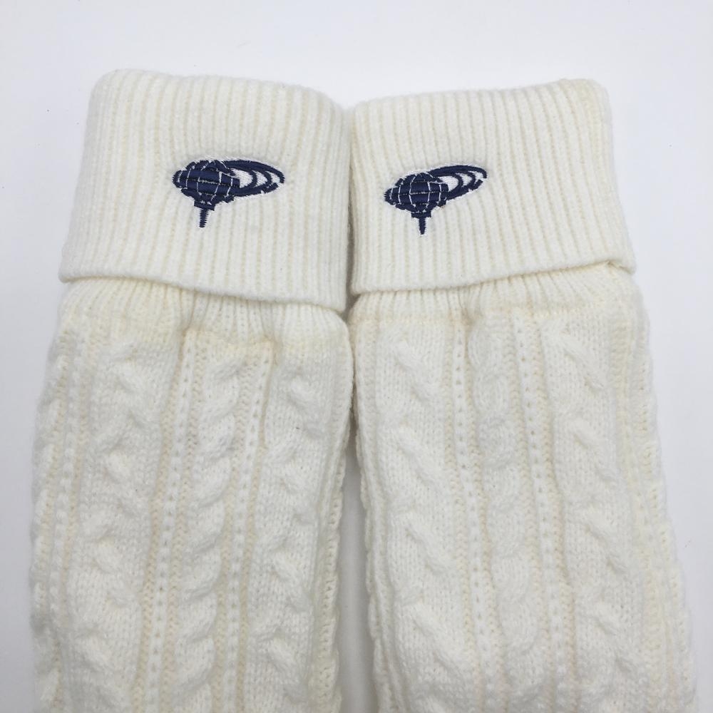 ビームスゴルフ ニットレッグウォーマー 白 ケーブル編み 裏フリース ロゴ刺しゅう レディース ゴルフウェア BEAMS GOLF