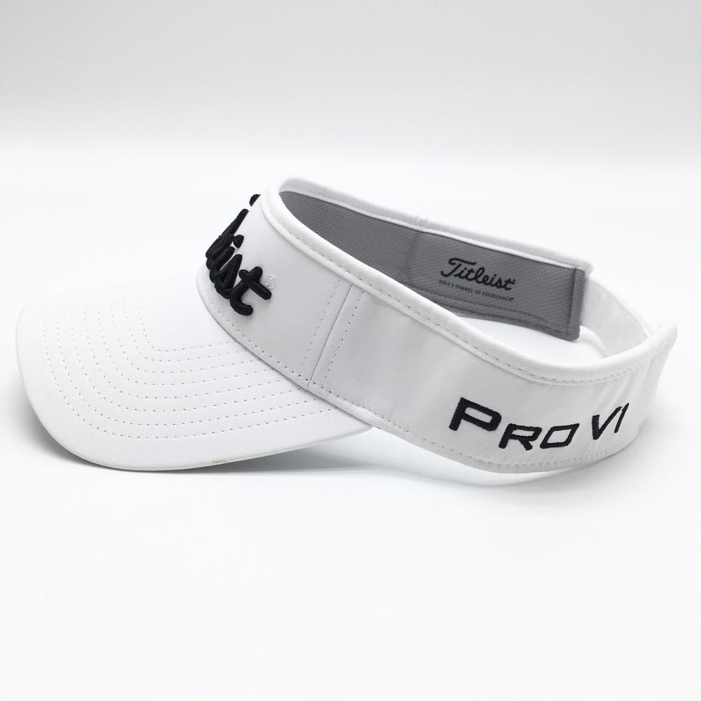 【美品】タイトリスト サンバイザー 白×黒 立体ロゴ ゴルフウェア TITLEIST