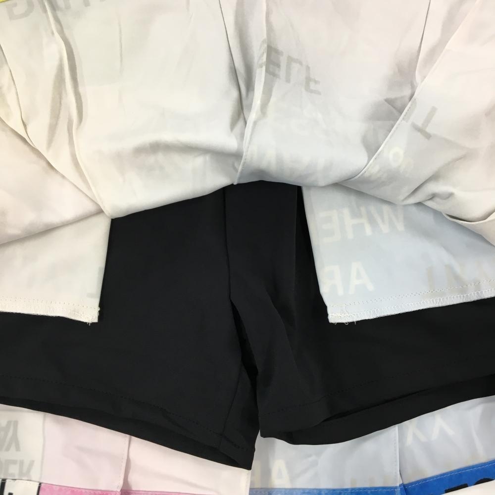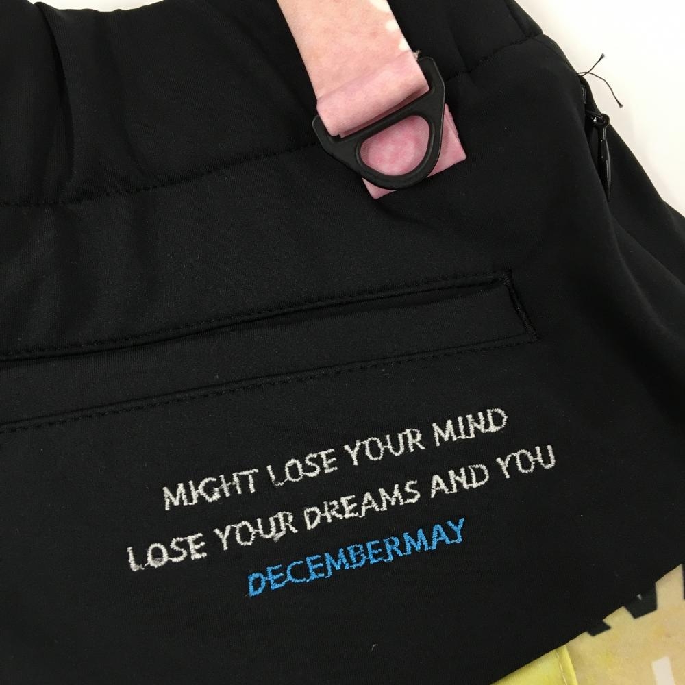 【超美品】ディセンバーメイ プリーツスカート 黒×マルチカラー 英字総柄 ウエストゴム レディース S ゴルフウェア DECEMBERMAY