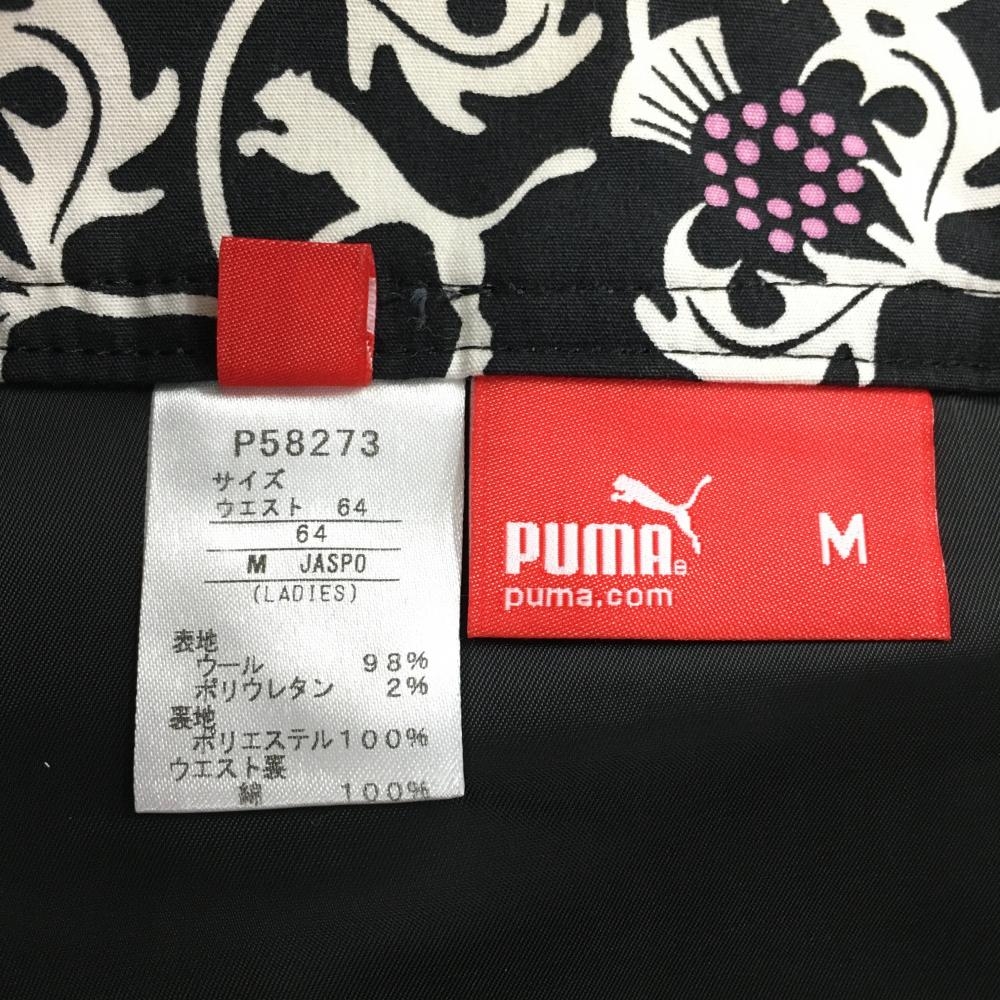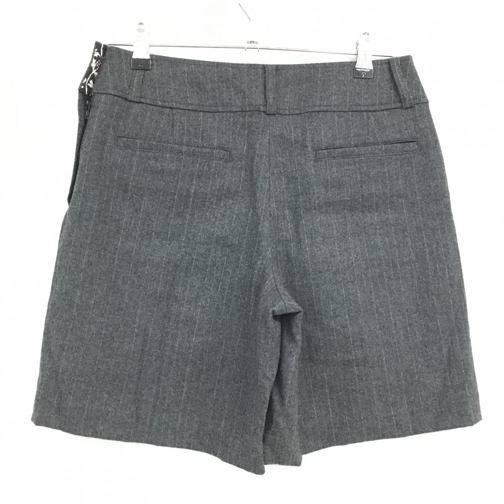 【超美品】プーマ ウールキュロットスカート ダークグレー×ベージュ系 ストライプ調 裾ロゴ レディース M ゴルフウェア PUMA