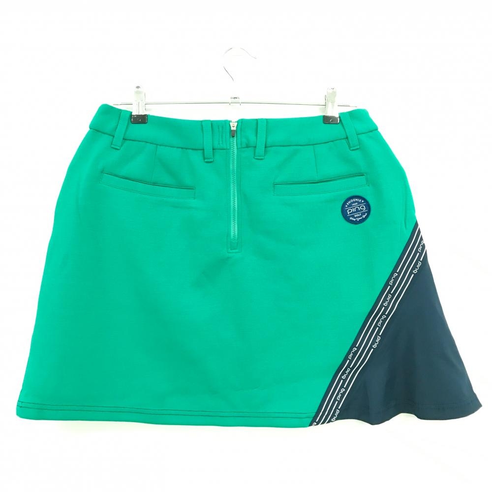 【新品】ピン スカート グリーン×ネイビー ロゴ白 レディース LL ゴルフウェア 2024年モデル PING