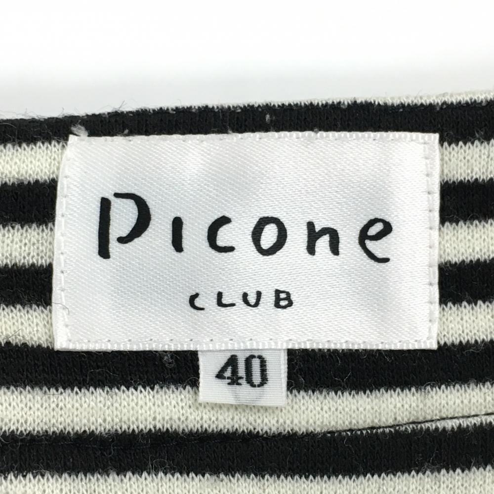 【美品】ピッコーネ ボックスプリーツスカート 白×黒 ボーダー 表微起毛 裏地付き レディース 40(L) ゴルフウェア PICONE