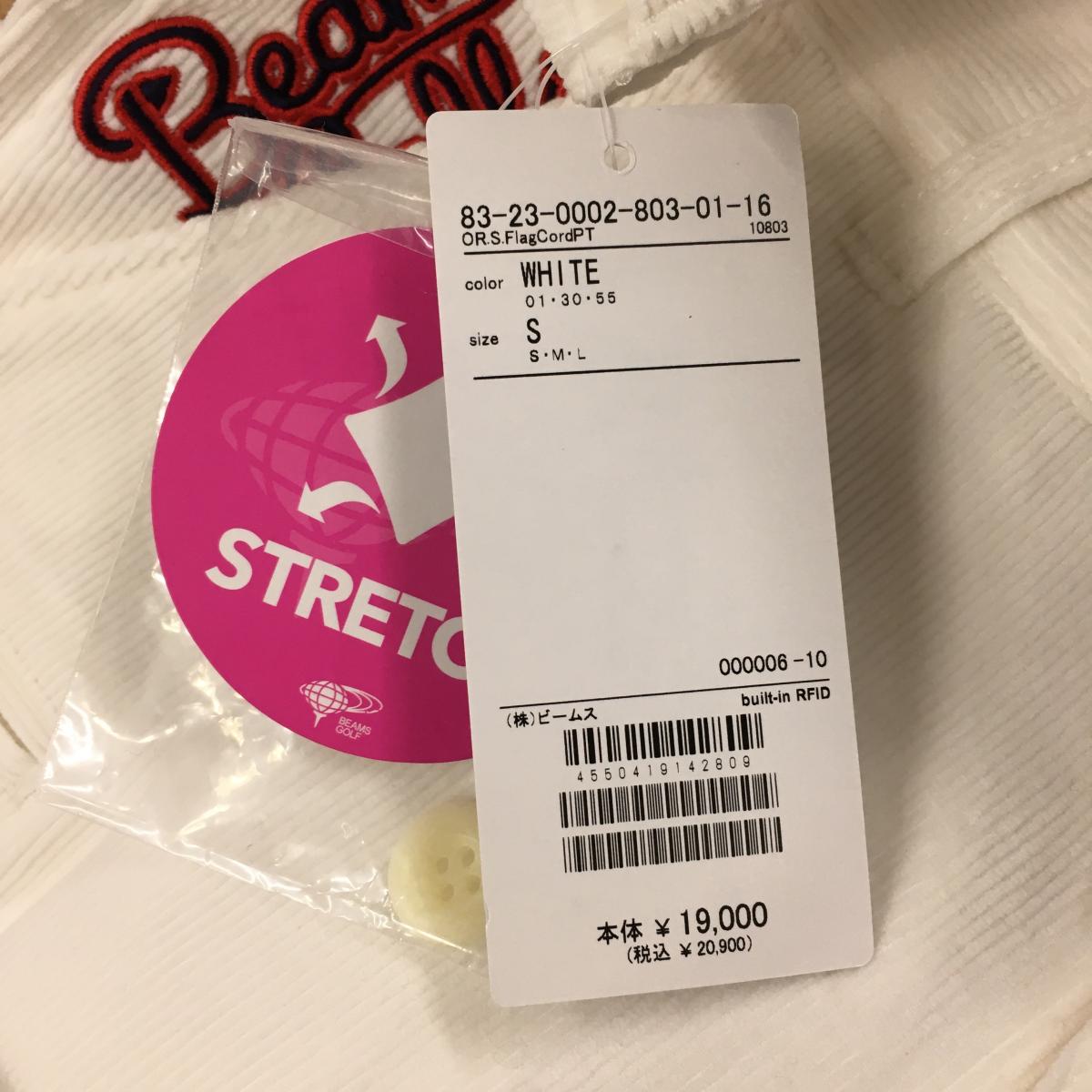 【新品】ビームスゴルフ コーデュロイパンツ 白 ポケット口刺しゅう ストレッチ レディース S ゴルフウェア BEAMS GOLF