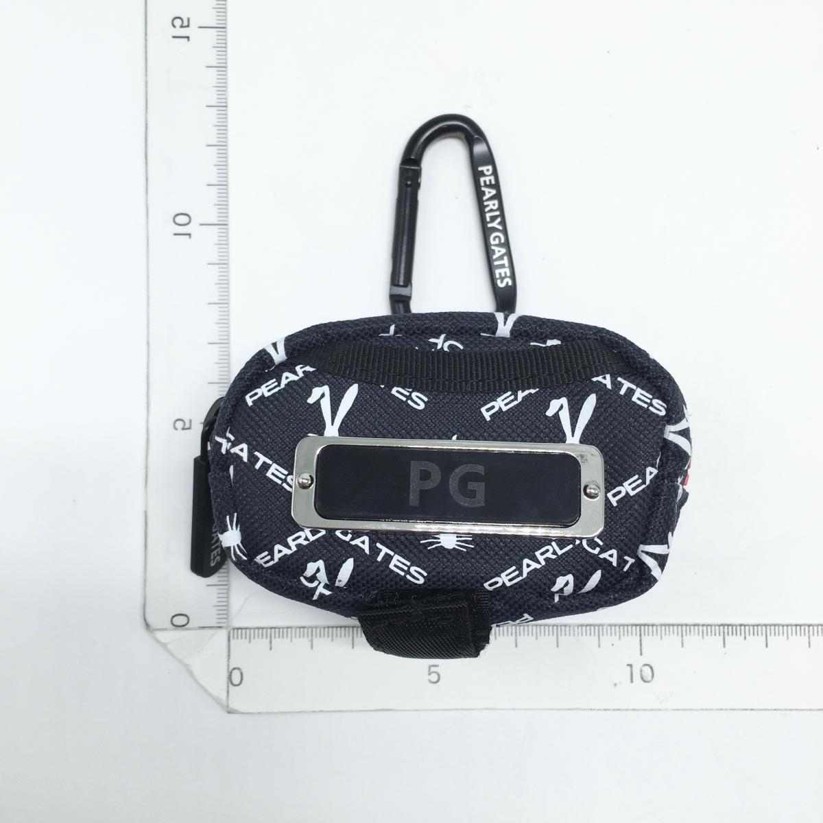 【超美品】パーリーゲイツ ボールポーチ 黒×白 総柄 カラビナ付 ボールケース ゴルフ 2026年モデル PEARLY GATES