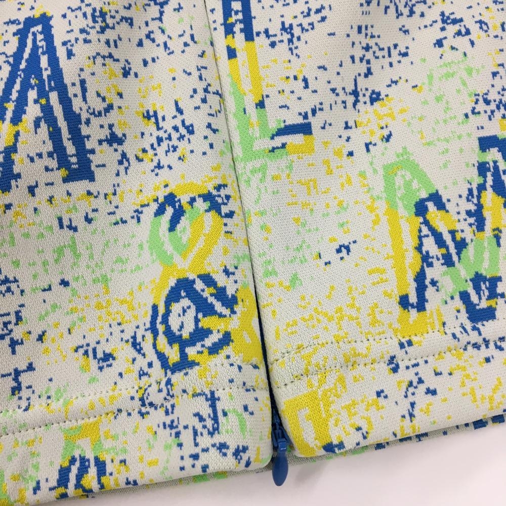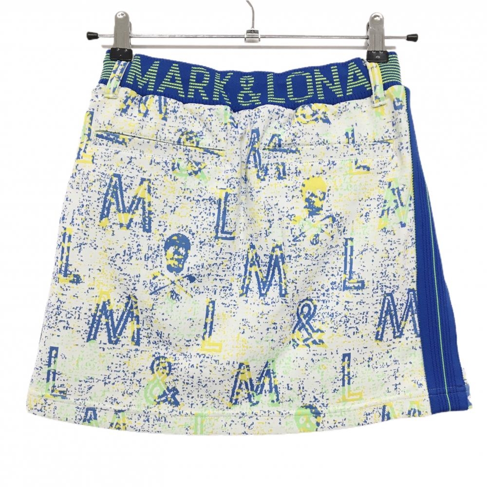 【美品】マークアンドロナ スカート 白×ブルー×イエロー 総柄 ウエストゴム レディース 36(S) ゴルフウェア MARK&LONA