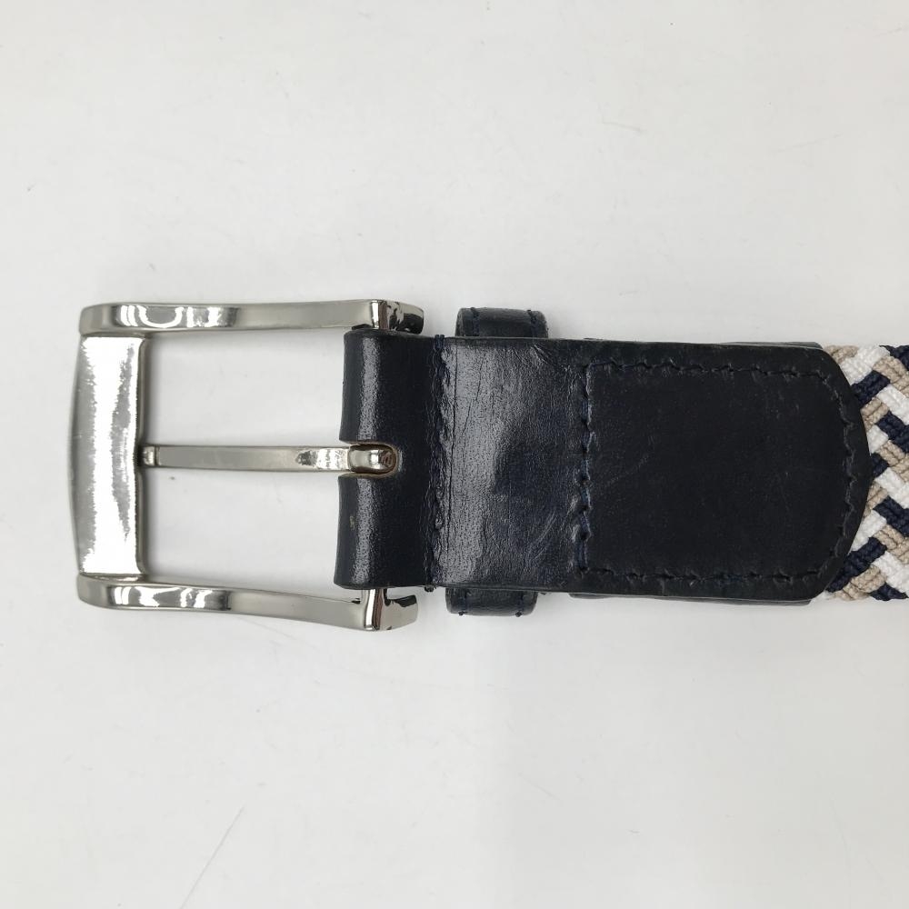 【美品】スリクソン メッシュベルト 白×ベージュ×ネイビー ストレッチ 編み込み シルバーバックル メンズ ゴルフウェア SRIXON