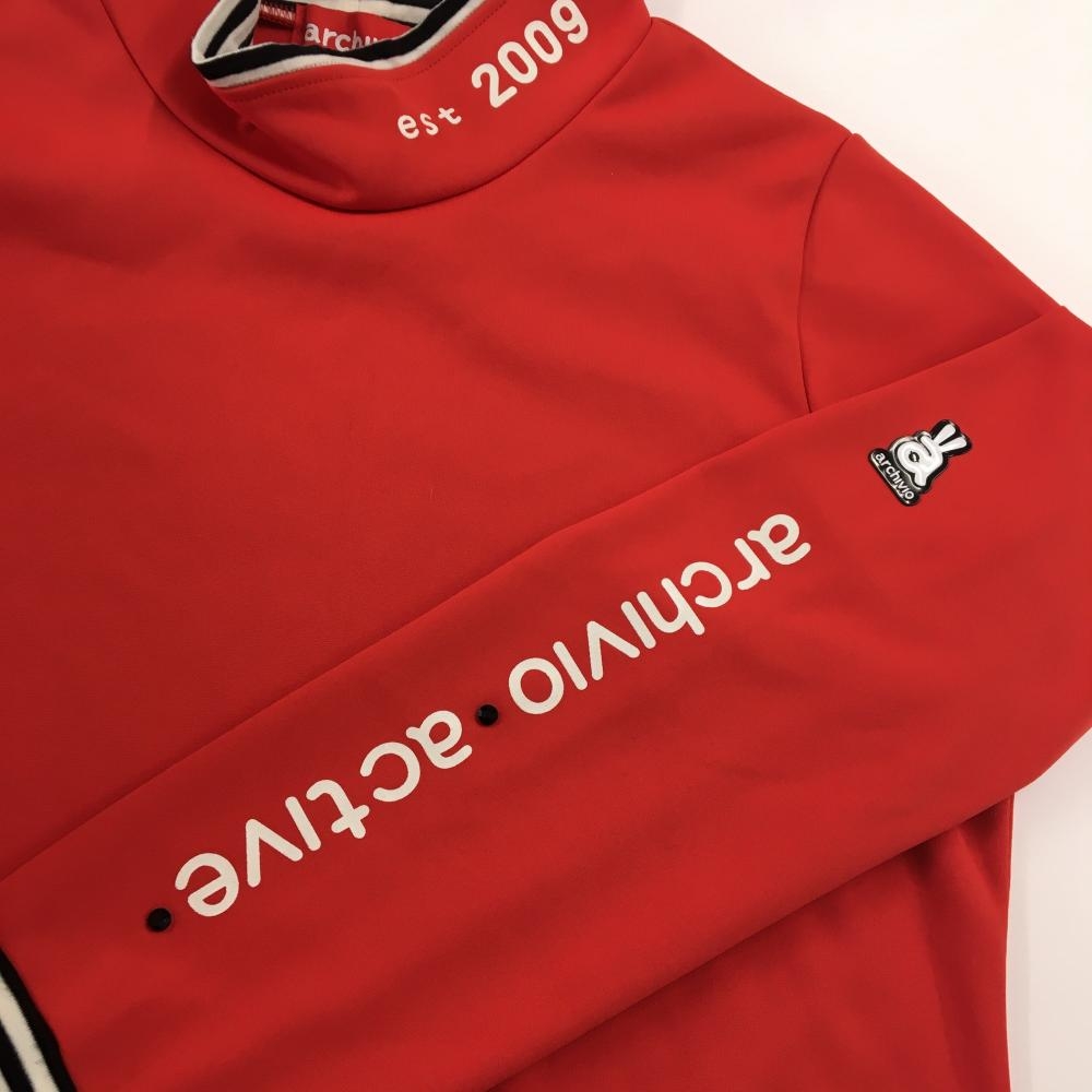 アルチビオ 長袖ハイネックシャツ レッド×白×黒 ネック・袖口ボーダー 裏起毛 レディース 38(M) ゴルフウェア archivio