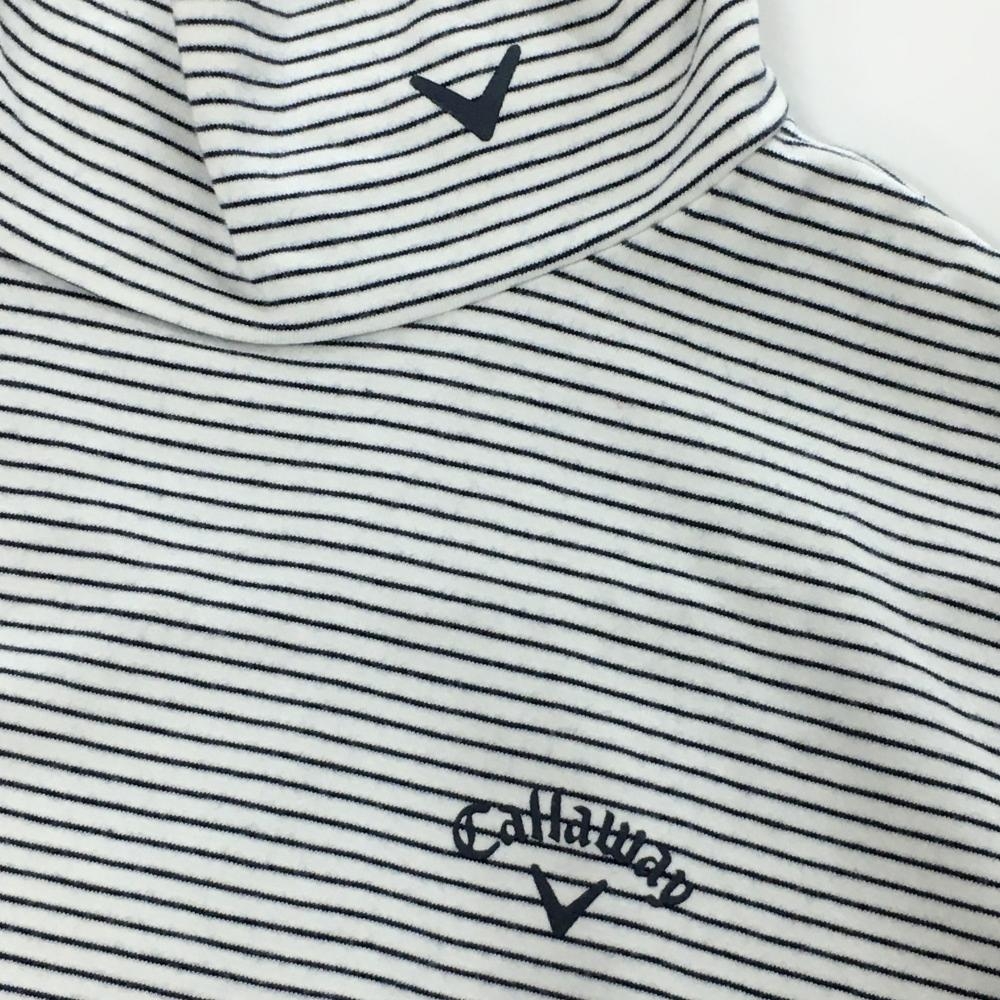 キャロウェイ 長袖ハイネックシャツ 白×ネイビー ボーダー レディース S ゴルフウェア Callaway