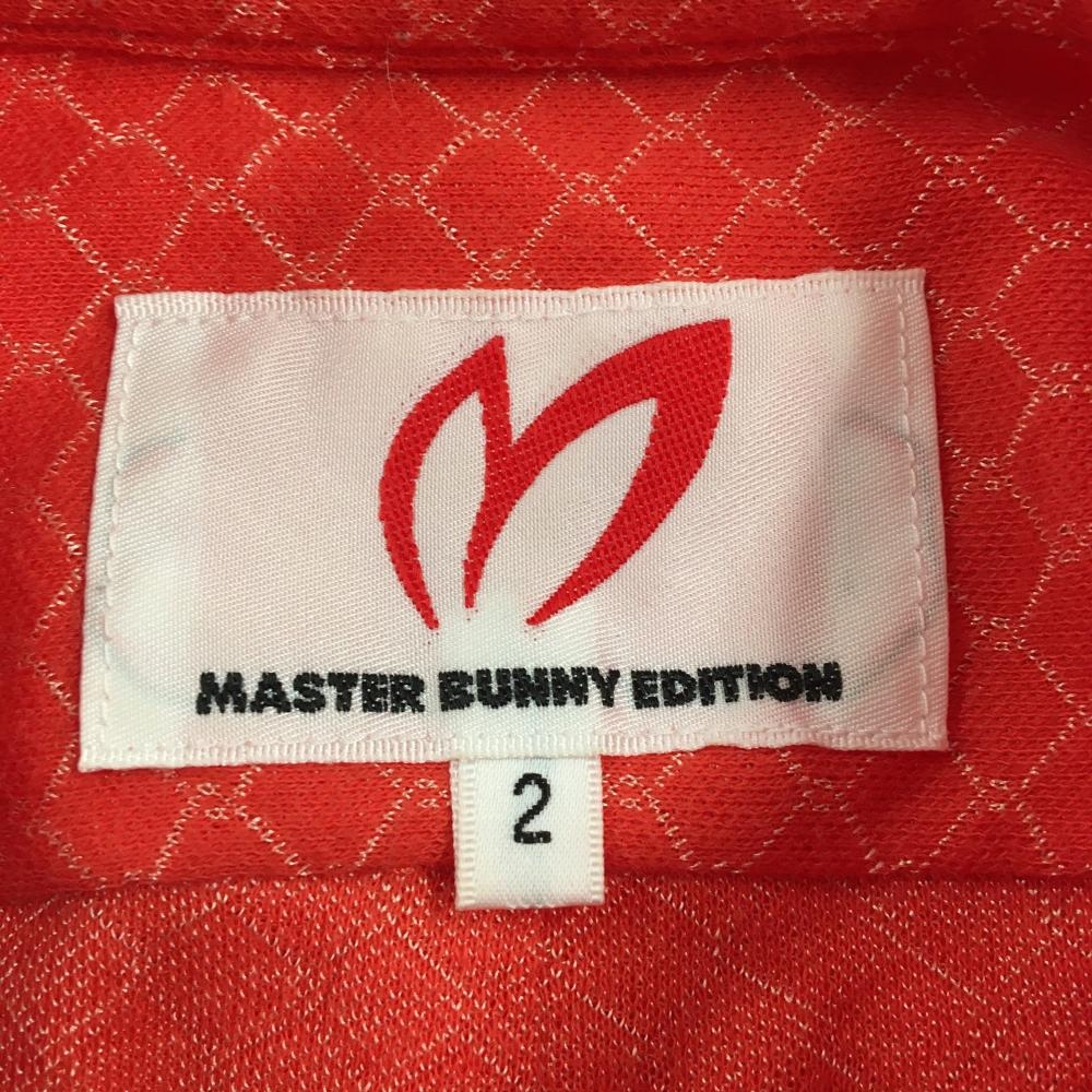 【美品】マスターバニー 長袖ポロシャツ レッド系×白 総柄 コットン混 レディース 2(L) ゴルフウェア MASTER BUNNY EDITION