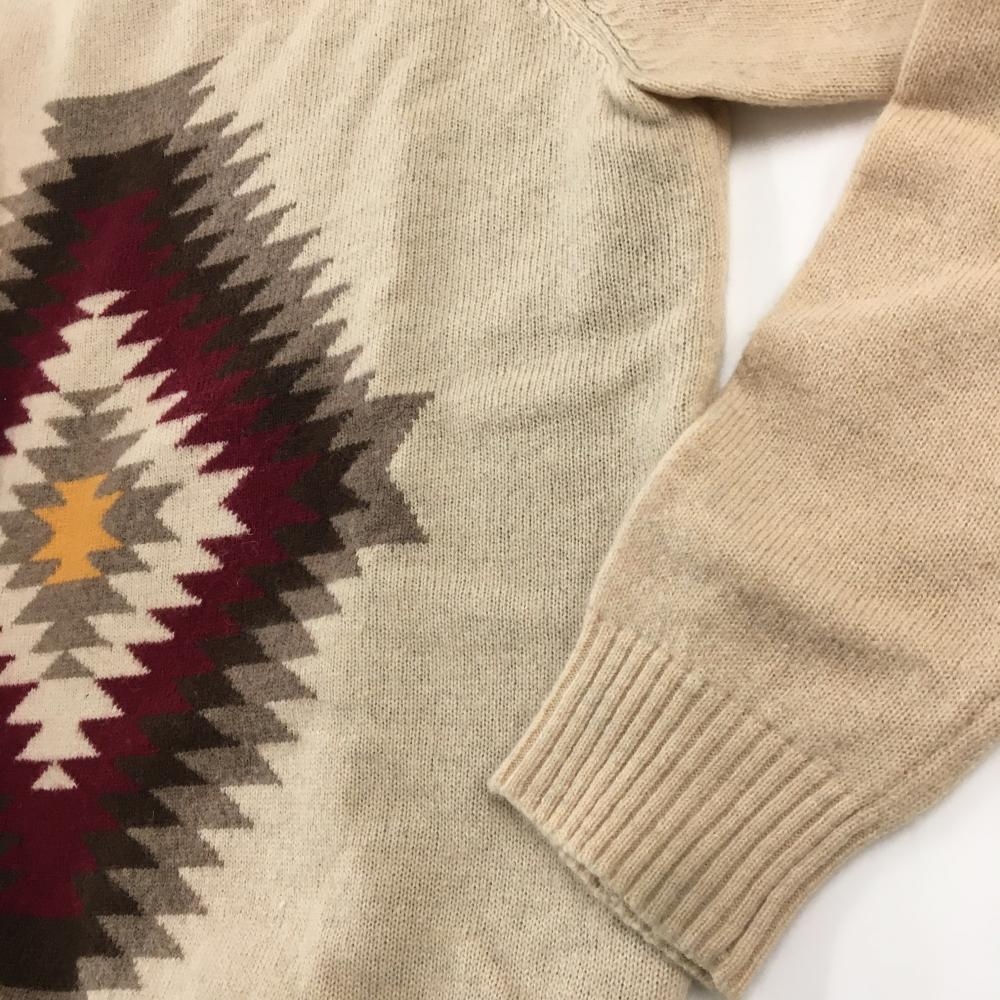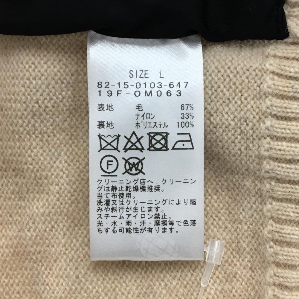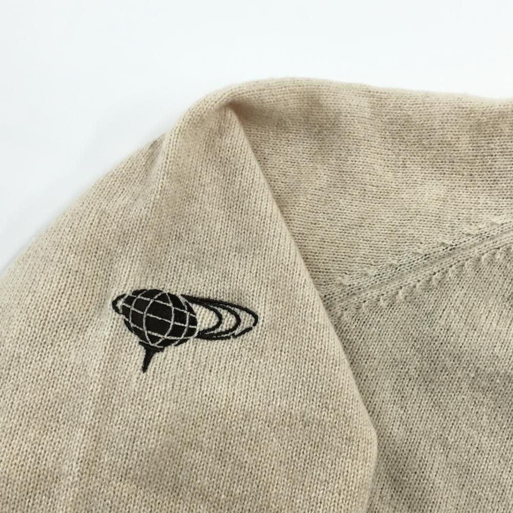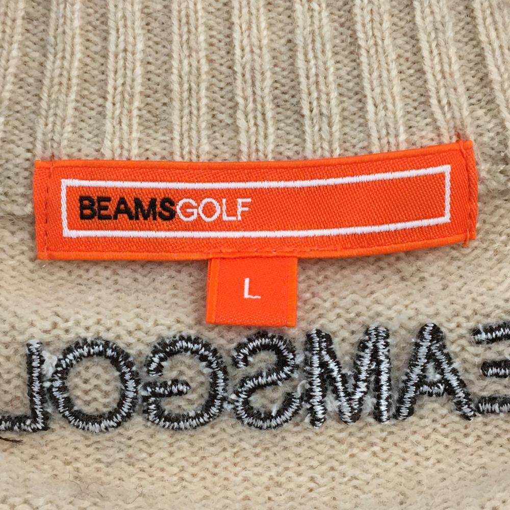 【美品】ビームスゴルフ セーター ベージュ×ブラウン ウール混 袖ロゴ ニット メンズ L ゴルフウェア BEAMS GOLF