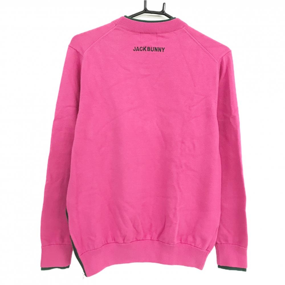 【美品】ジャックバニー セーター ピンク×グリーン ネック・袖口重ね着風 コットン混 ニット メンズ 4(M) ゴルフウェア Jack Bunny