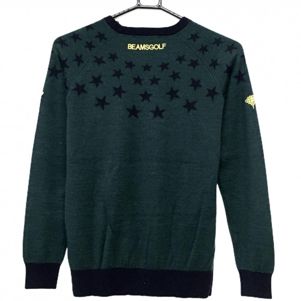 ビームスゴルフ セーター ダークグリーン系×ダークネイビー 身頃上星柄 ウール混 ニット レディース M ゴルフウェア BEAMS GOLF