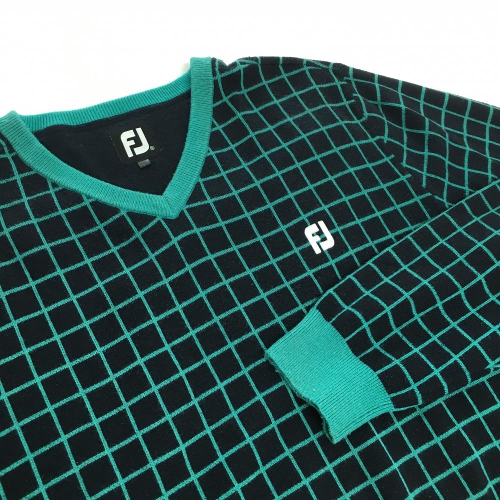 フットジョイ セーター ダークネイビー×グリーン 格子柄 ウール混 ロゴ刺しゅう ニット メンズ XL ゴルフウェア FootJoy