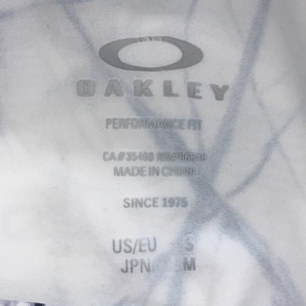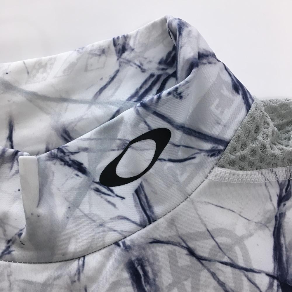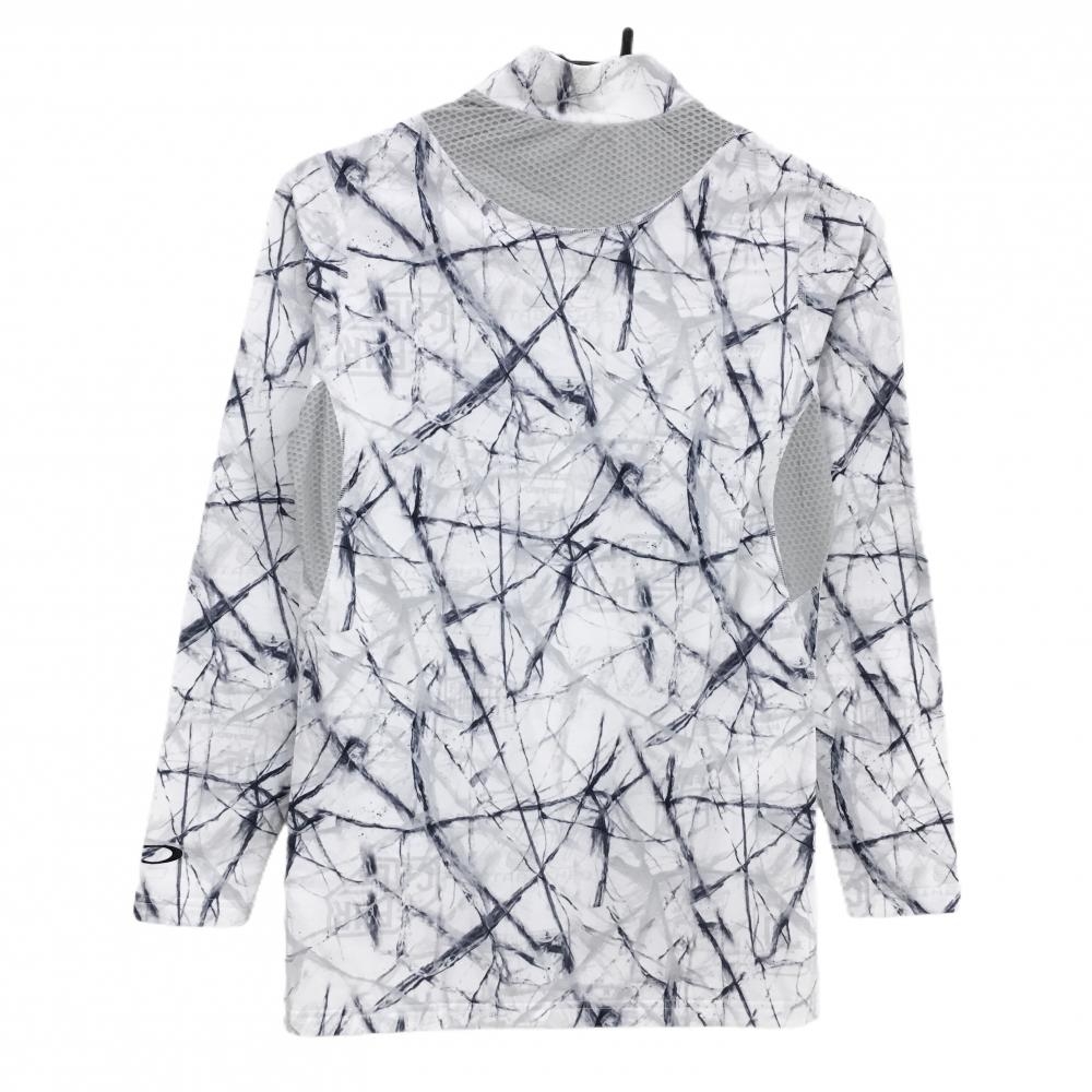 【超美品】オークリー 長袖ハイネックシャツ 白×ネイビー×グレー 総柄 一部メッシュ切替 メンズ M ゴルフウェア Oakley