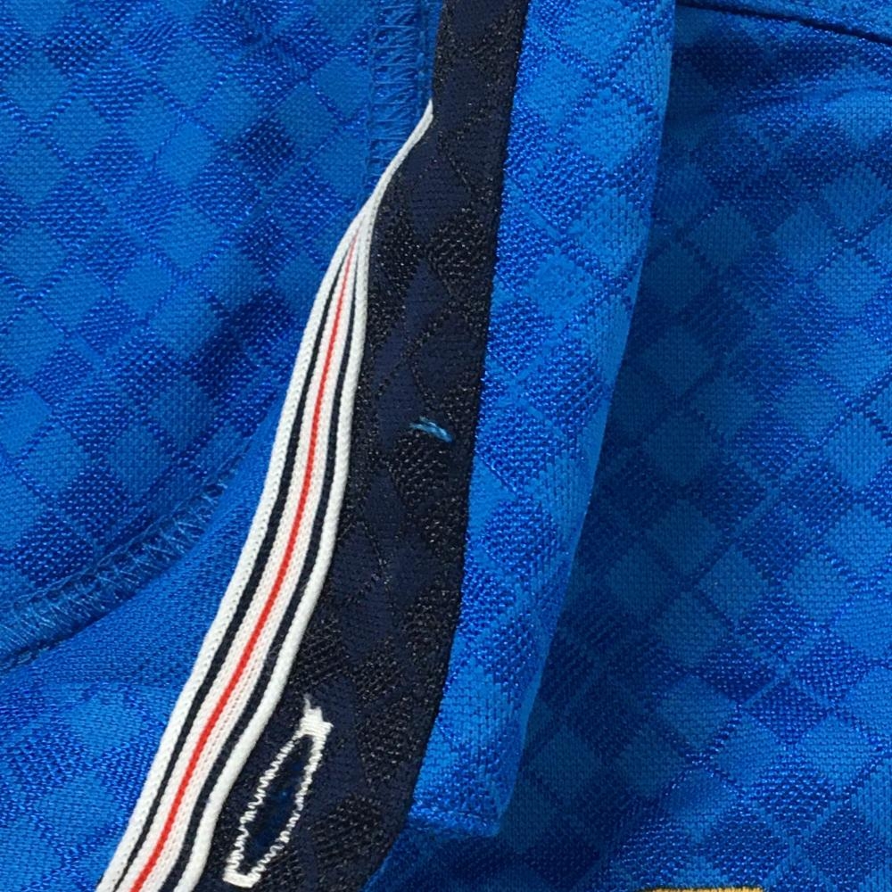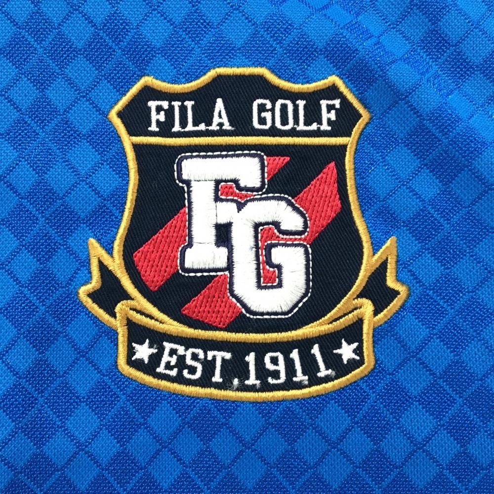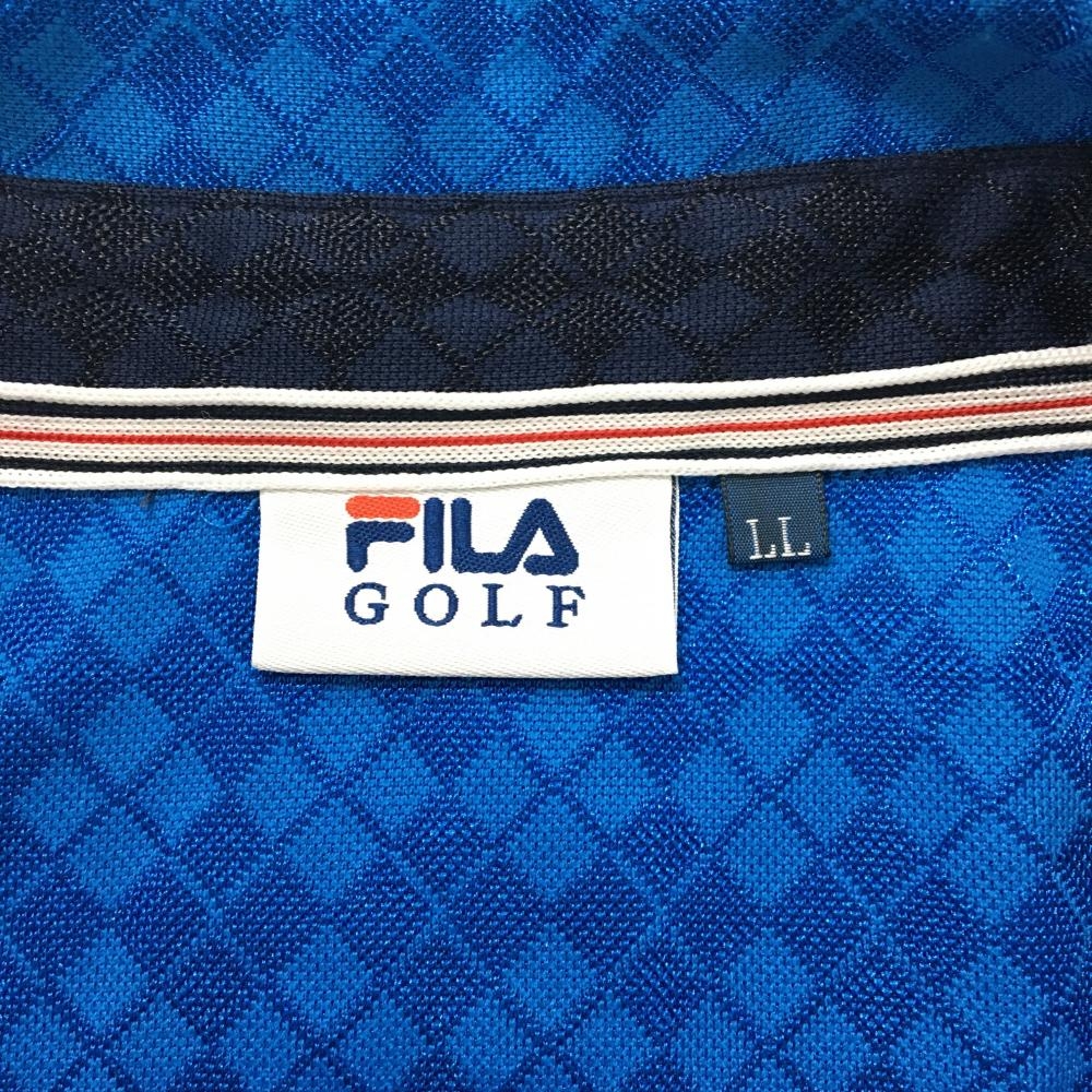 【美品】フィラゴルフ 長袖ポロシャツ ブルー ダイヤ総柄 ワッペン メンズ LL ゴルフウェア FILA GOLF