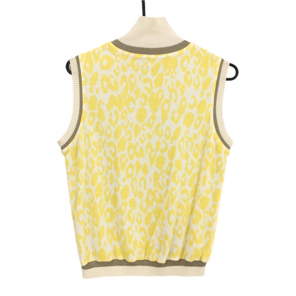 【美品】アルチビオ ハイネックニットベスト イエロー 裏地付 レオパード レディース 38(M) ゴルフウェア archivio