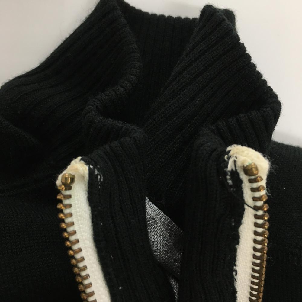 ジュンアンドロペ ニットジャケット 黒×白 蓄熱裏地 胸ロゴ ウール混 ニット レディース M ゴルフウェア JUN&ROPE